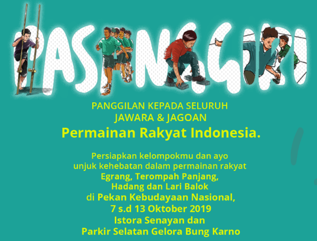 Pekan Kebudayaan Nasional akan menampilkan permainan rakyat yang sederhana, di mana tidak memerlukan peralatan, fasilitas, atau logistik yang rumit. Kegiatan yang digelar diharapkan mampu mengasah dan mengembangkan permainan rakyat tersebut, sehingga jadi lebih menarik dan bisa menjadi perhatian publik.