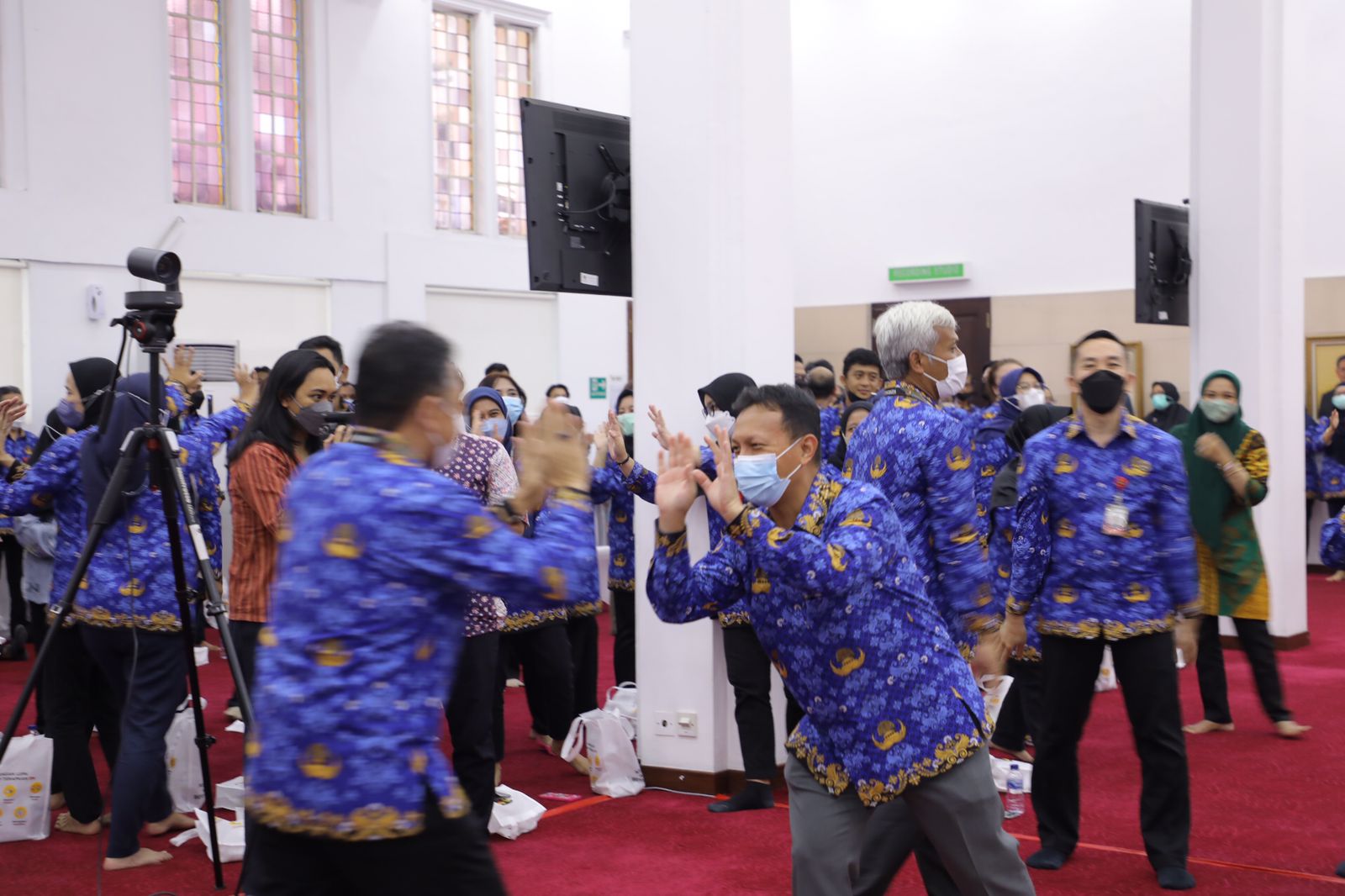 Ia melanjutkan dengan suara penuh semangat, "Kita sebagai bagian dari ASN itu tentunya harus bisa melaksanakan core values BerAKHLAK di lingkup kita."