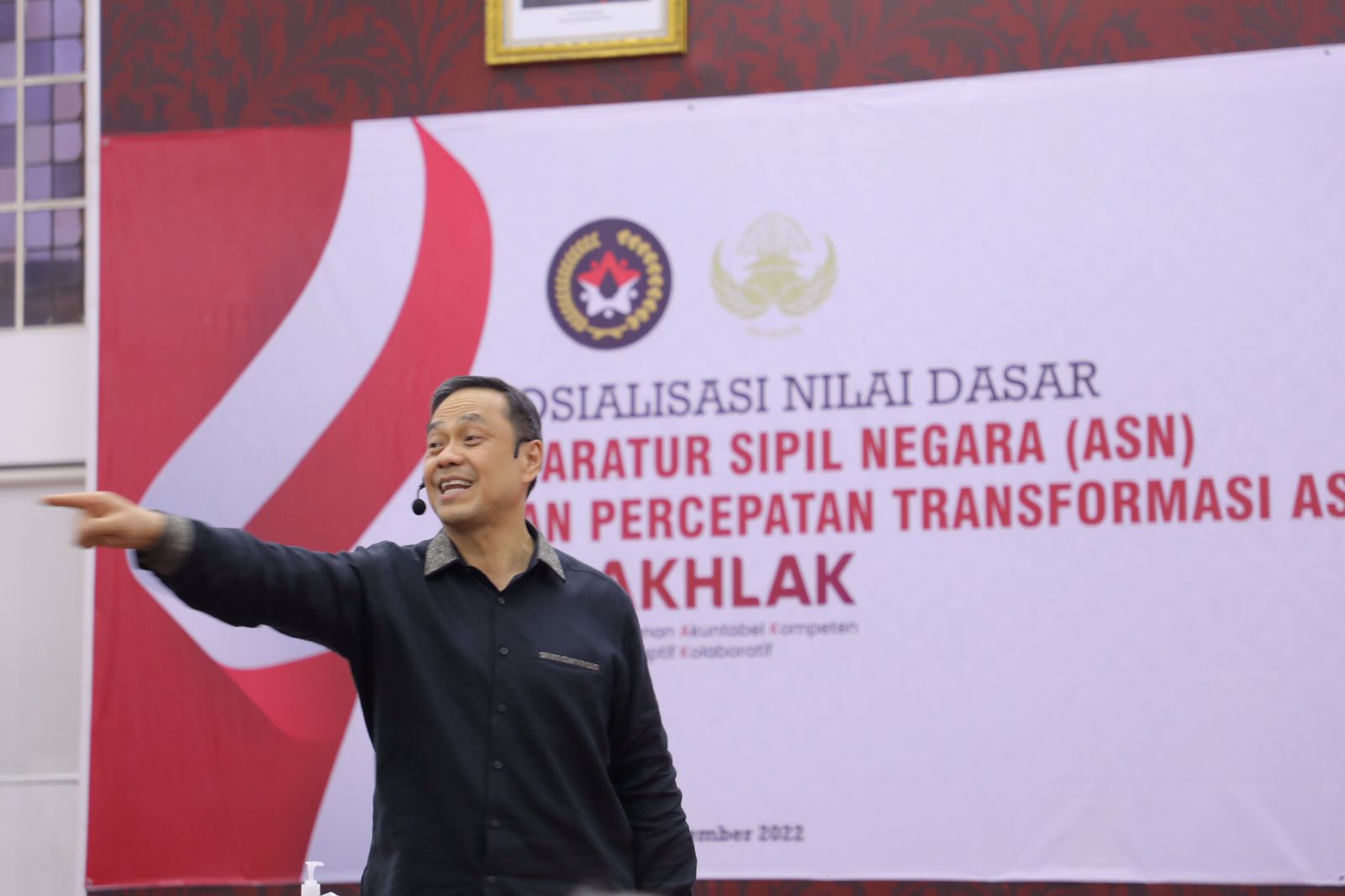 "Dulu pada saat reformasi birokrasi kita mengedepankan 5S yaitu senyum, sapa, salam, sopan, santun. Namun sekarang Presiden Jokowi telah meluncurkan Core Values BerAKHLAK, yang merupakan nilai nilai dasar bagi seluruh ASN yang jumlahnya 4,2 juta lebih di Indonesia ini," jelasnya.