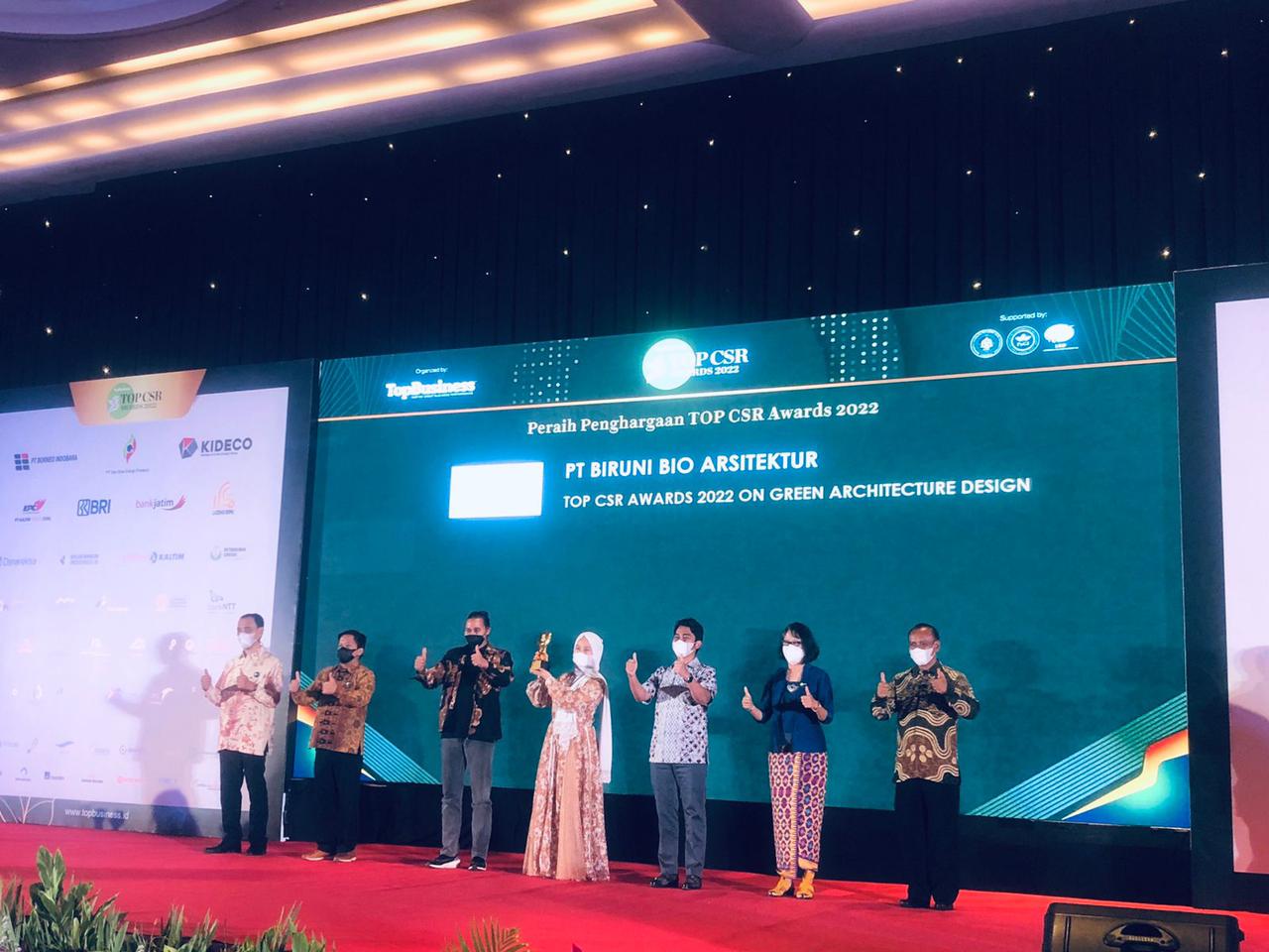 Baru-baru ini, Rima Ginanjar Architects (PT Biruni Bio Arsitektur) meraih penghargaan dalam ajang Top Corporate Social Responsibility (CSR) Awards 2022 yang digelar di Hotel Raffles Jakarta, Rabu (30/3/2022). Ini merupakan acara CSR Awards terbesar yang diselenggarakan oleh majalah Top Business, diikuti oleh 160 perusahaan ternama mulai dari BUMN serta perusahaan-perusahaan nasional seperti Telkom, BCA, Astra, dan berbagai perusahaan tambang ternama lainnya.