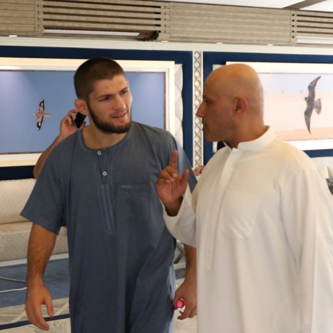 Khabib berhasil mengalahkan Conor McGregor dalam pertandingan perebutan gelar juara UFC di Amerika Serikat setahun lalu. Namun, di akhir pertandingan, kericuhan terjadi setelah salah satu rekan McGregor melontarkan cacian kepada Khabib dan Khabib tersulut emosi.