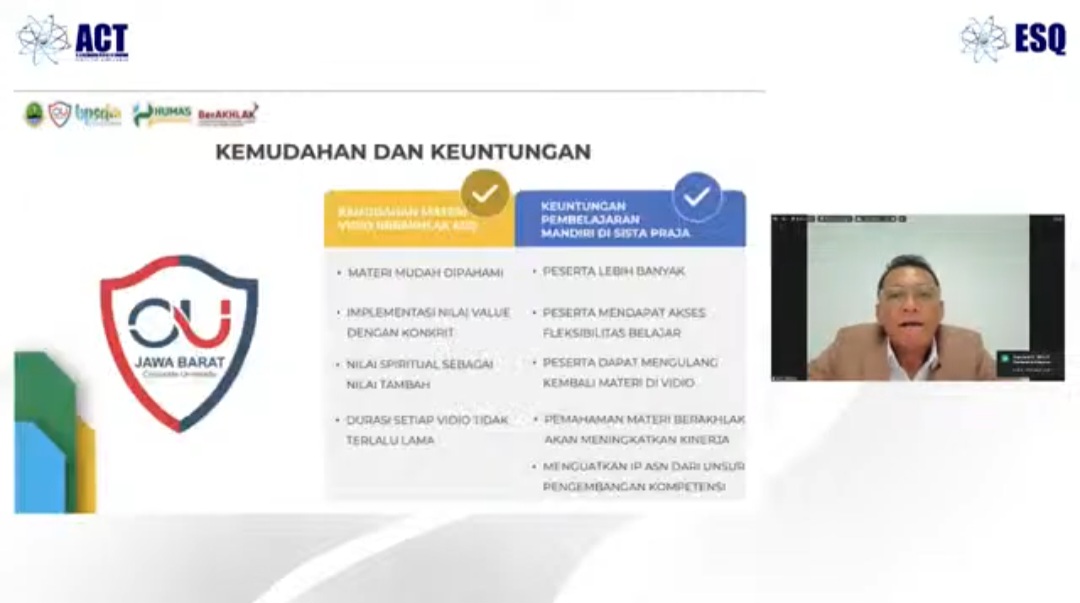 "Adapun kemudahan dan keuntungan materi video pembelajaran BerAKHLAK dari ACT Consulting International ini yakni mudah dipahami, bisa dengan konkrit mengimplementasikan core values, ada nilai spiritual sebagai nilai tambah bagi kita.