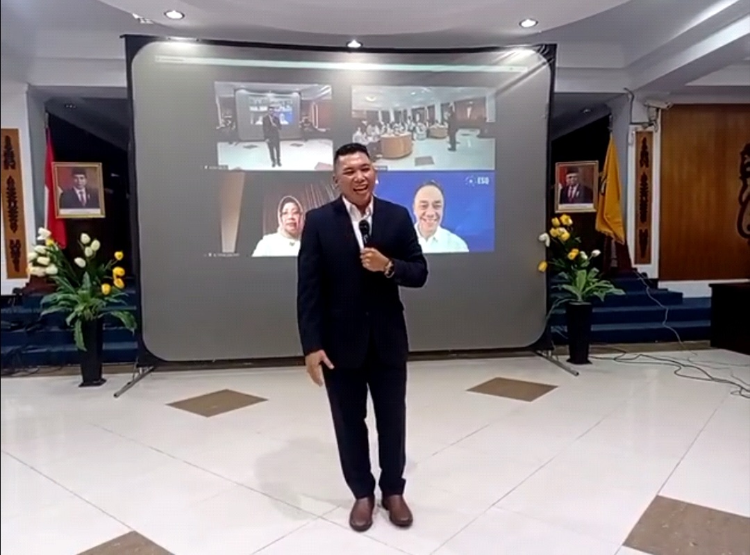 Selanjutnya, Founder ESQ Group Ary Ginanjar Agustian turut menyapa secara virtual lewat Zoom Meeting.