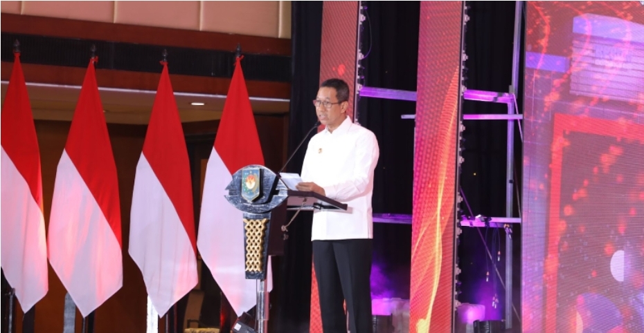 RAKORNAS BPSDM 2023 yang digelar di Ballroom Flores, Hotel Borobudur, Jakarta Pusat dibuka dengan sambutan oleh Gubernur DKI Jakarta, Heru Budi Hartono.