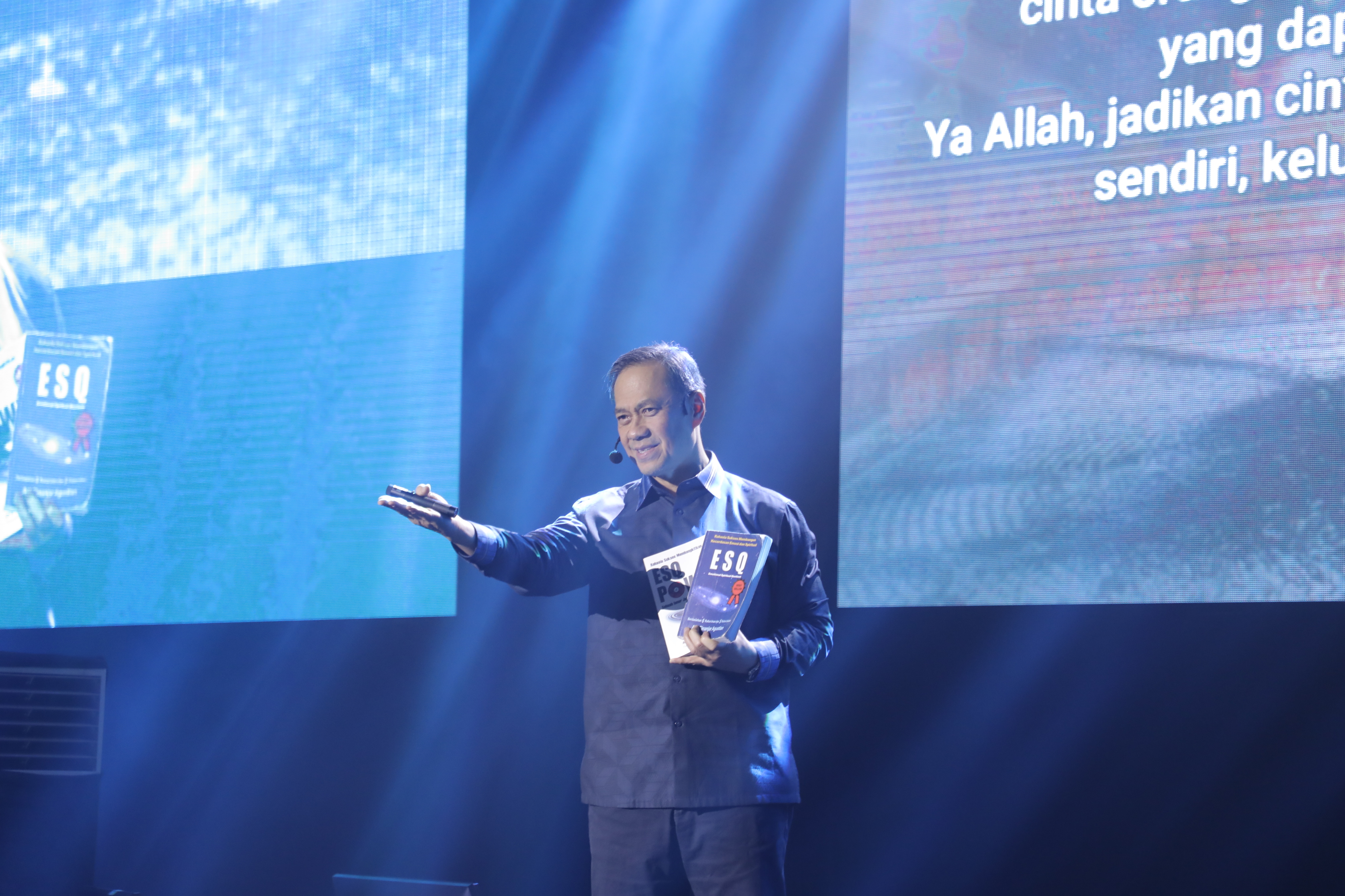 "Tak terbayang bapak ibu, kalau bapak ibu selama 2 hari ini merasa bahagia mengikuti training ESQ. Apalagi mereka, para mahasiswa ESQ Business School, yang kuliah dan mendapatkan modul ESQ selama 4 tahun," kata Syaiful (trainer ESQ).