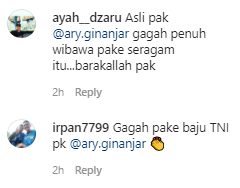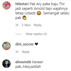 Postingan Ary, membuat warganet tertarik untuk berkomentar, lantaran dalam potretnya Ary sedang mengenakan baju TNI saat acara Pelatihan ESQ angkatan ke-2 SESKOAD tahun 2004 di Bandung.