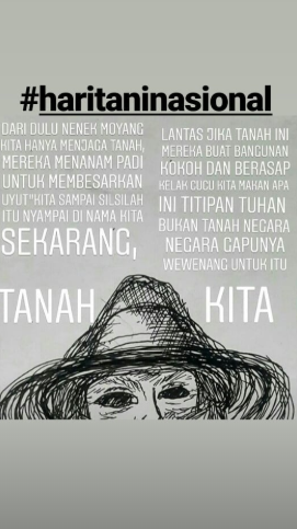Melansir dari akun IG @haritaniipb, sejak UUPA 1960 disahkan menjadi dasar menjalankan pengelolaan barang agraria yang berkeadilan. Rupanya hingga sekarang, keadilan itu hanya milik beberapa orang.