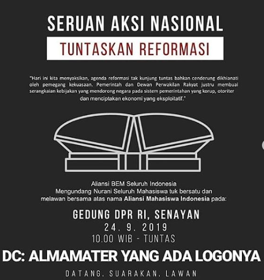 Untuk memposisikan diri di barisan terdepan dalam Aksi Nasional dan hadir dalam undangan Konsolidasi Mahasiswa IPB yang diadakan sejak tanggal 23 September 2019 kemarin. Dan adakan aksi pada tanggal 24 September 2019 di Istana Negara dan Gedung DPR RI.