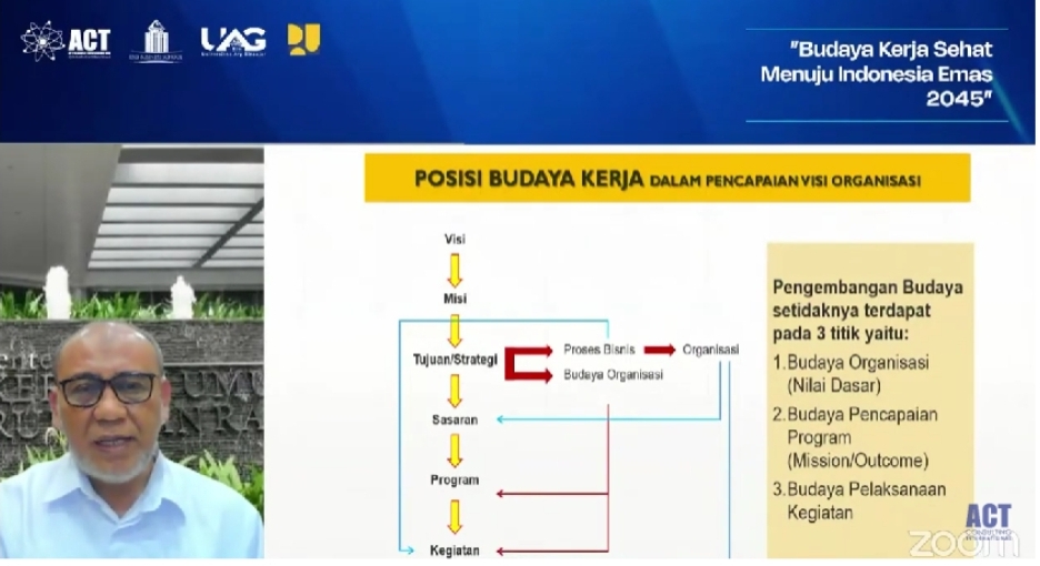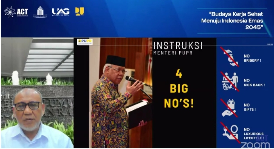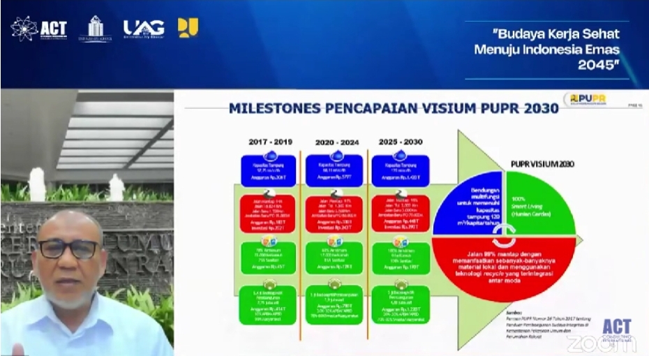 Dalam webinar Menjaga Konsistensi Membangun Integritas dan Budaya Kerja Insan PUPR, ACT Consulting International menghadirkan Ir. Asep Arofah Permana, M.M., M.T selaku Asesor SDM Aparatur Ahli Utama Kementerian PUPR. Sebelumnya, ada juga sharing dari pihak Bank Bjb, Bank Indonesia dan RSAB Harapan Kita.