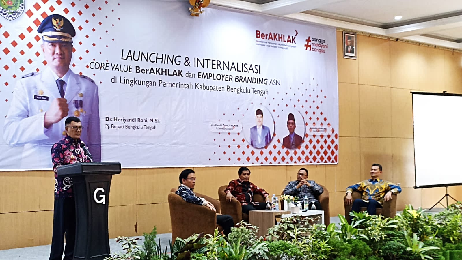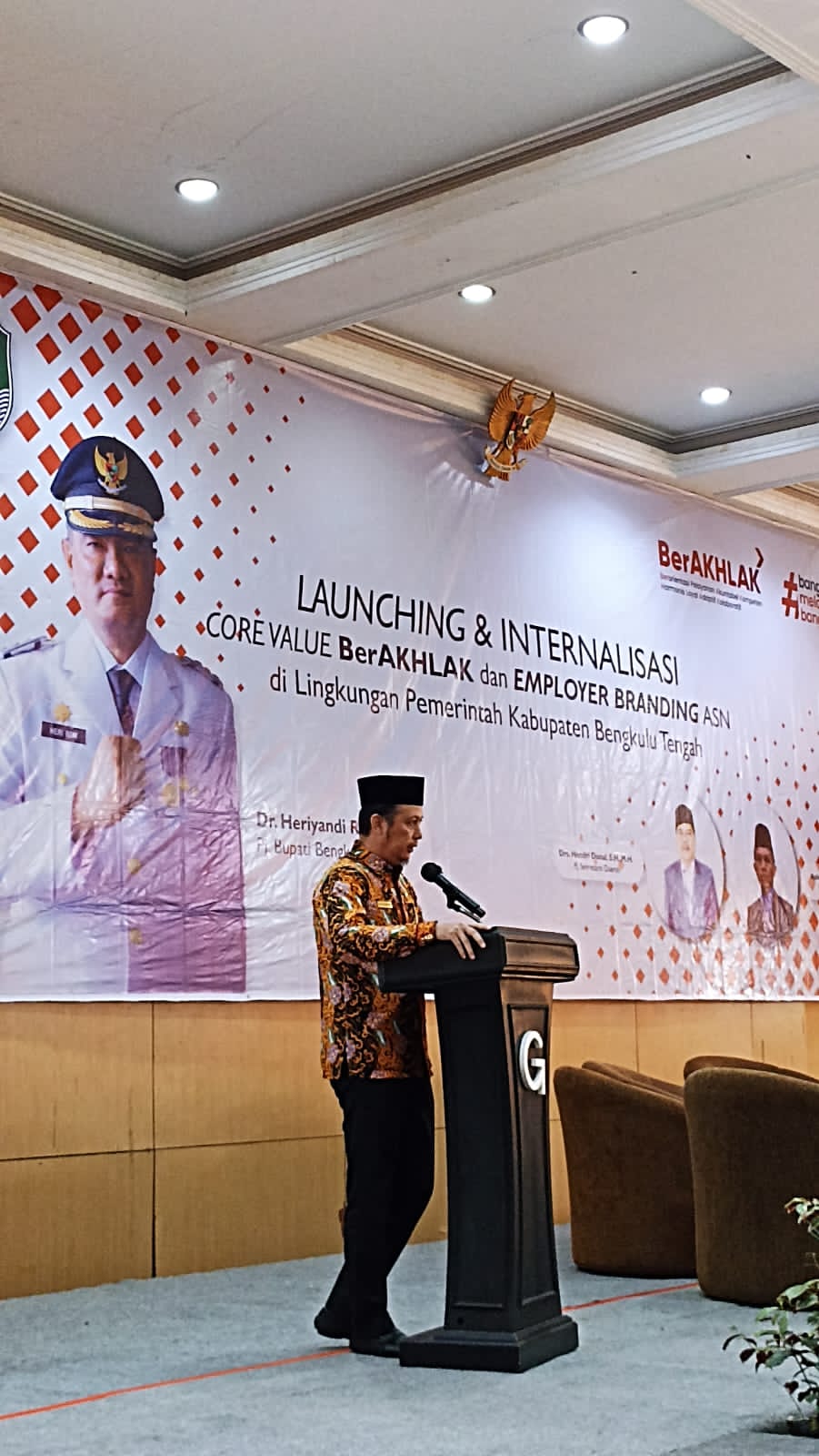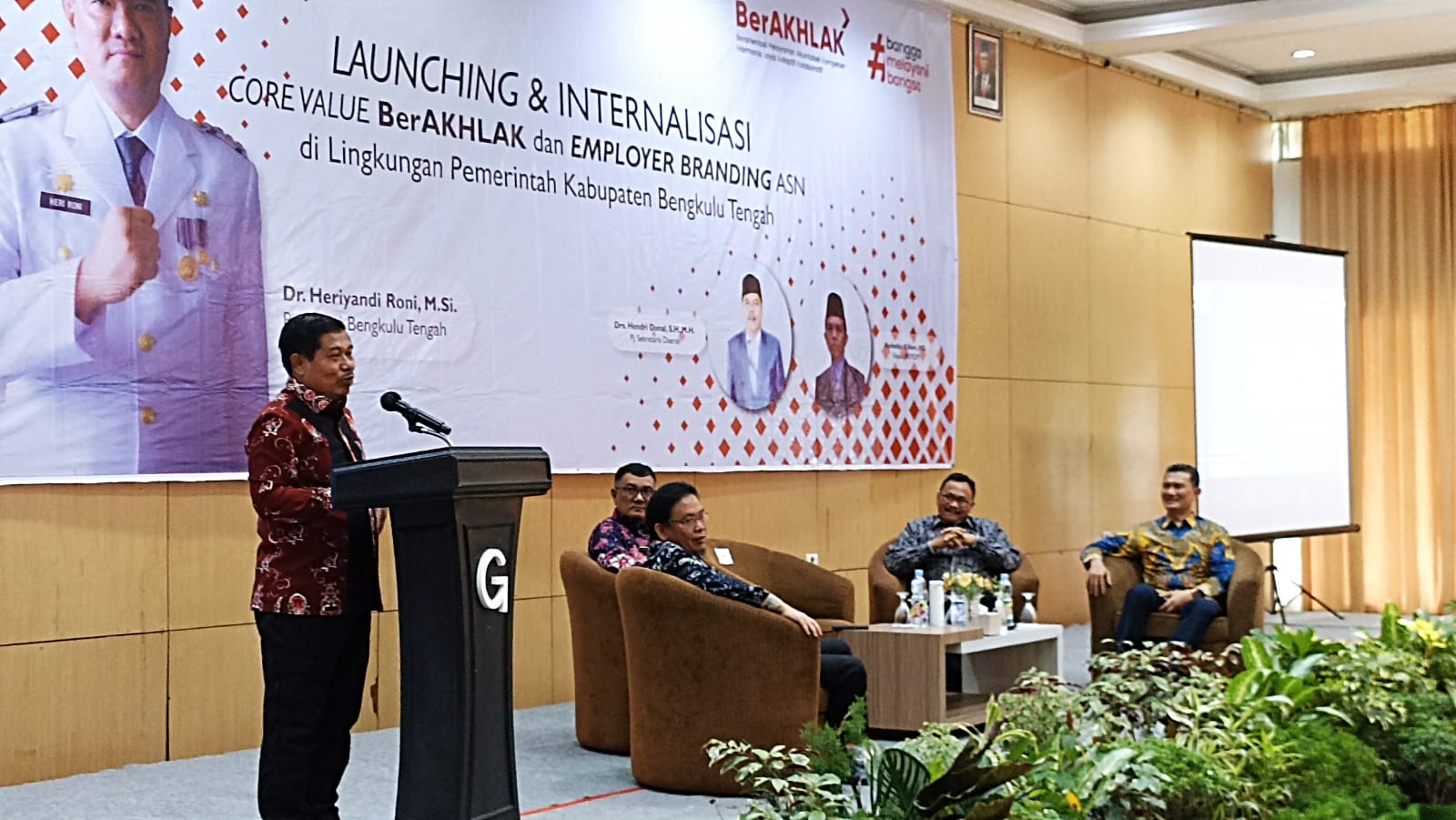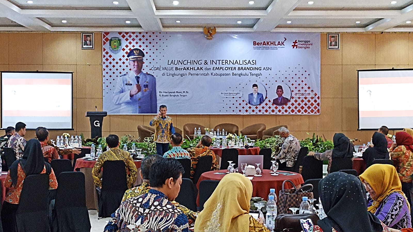 ESQNews.id, BENGKULU - Dalam menerapkan Sumber Daya Aparatur yang berkompeten di bidang pelayanan publik, Pemerintah Kabupaten Bengkulu Tengah melalui Badan Kepegawaian dan Pengembangan Sumber Daya Manusia (BKPSDM) melaksanakan Launching dan Internalisasi Core Values BerAKHLAK serta Employer Branding Aparatur Sipil Negara (ASN) di Ruang Lingkup Pemerintahan Kabupaten Bengkulu Tengah yang berlangsung di Ballroom Grage Hotel Bengkulu pada Sabtu (13/11/2022).