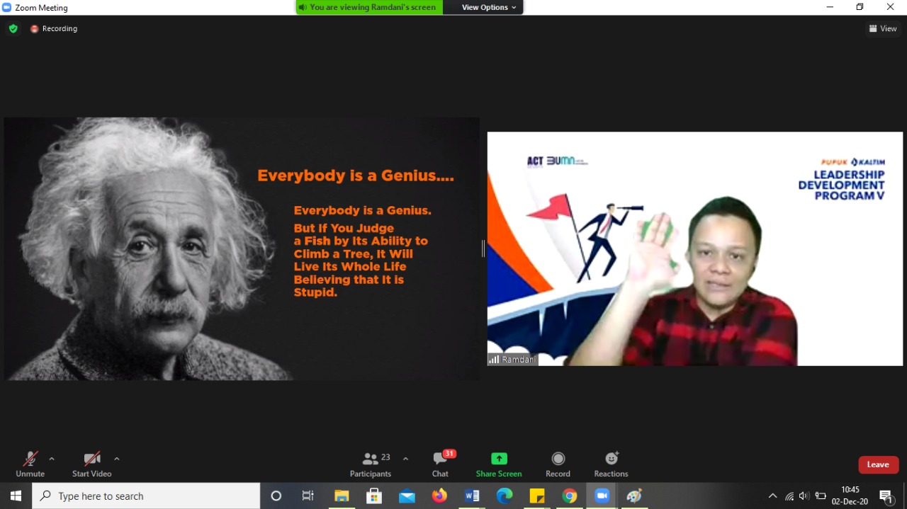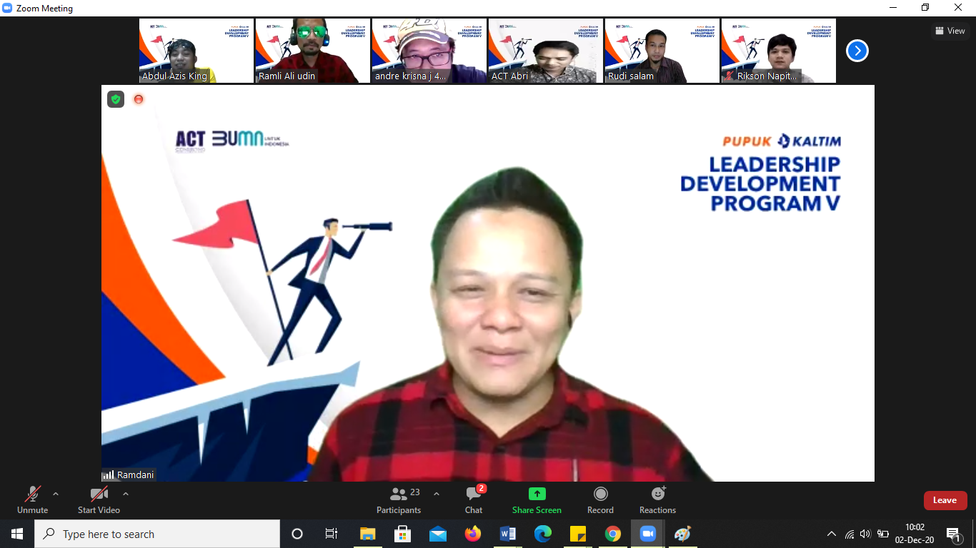 ESQNews.id, JAKARTA - 6 hari lamanya sekitar 20 orang pimpinan PT Pupuk Kaltim join dalam event yang diselenggarakan ACT Consulting yakni Leadership Development Program (LDP) V Batch 3 by Zoom Meeting.