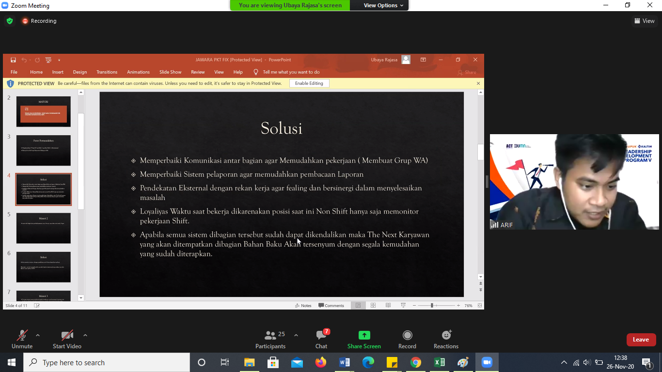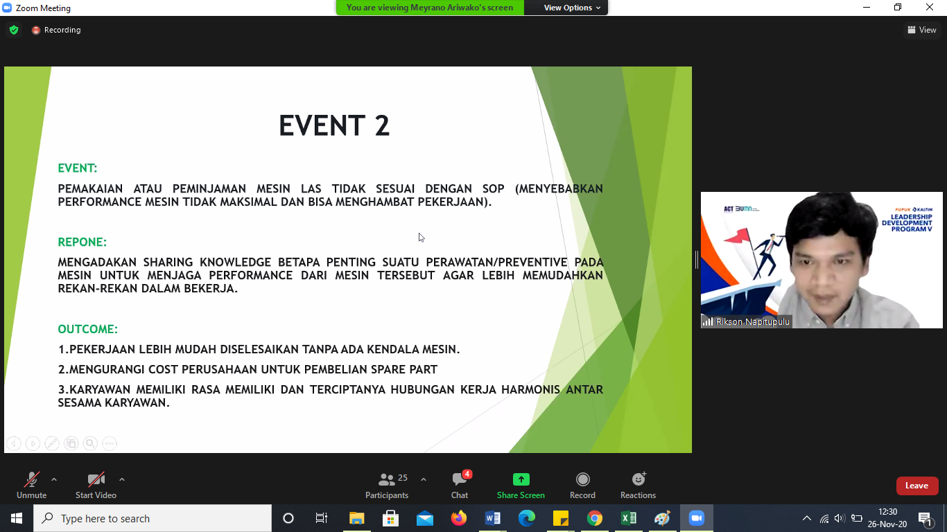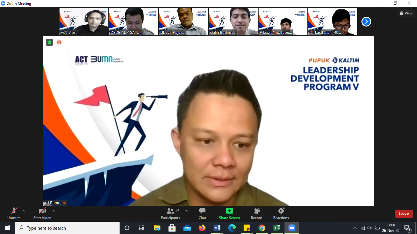 ESQNews.id, JAKARTA - ACT Consulting selenggarakan Leadership Development Program V (LDP V) Batch 3 di PT Pupuk Kaltim selama 9 hari pada (25/11-03/12/2020) melalui platform Zoom Meeting.
