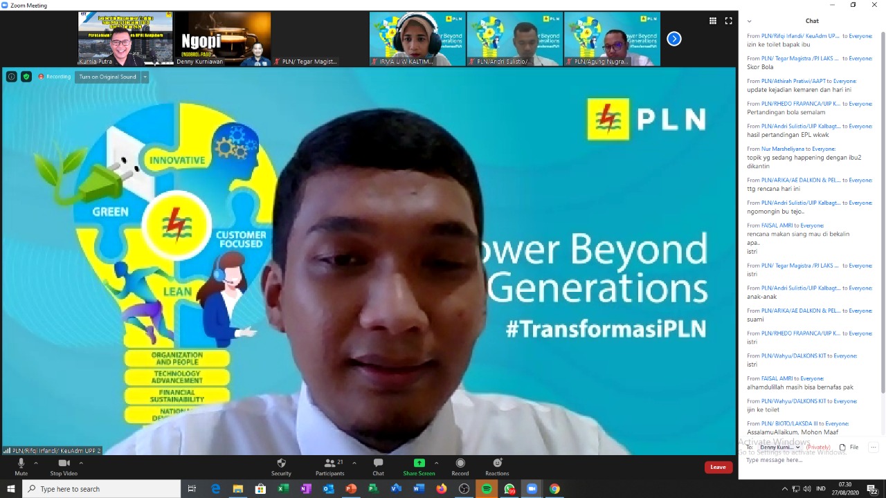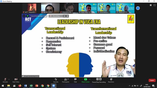Ia mengatakan, meskipun online harus tetap menjalankan pelatihan dan tetap menjaga protokol kesehatan. Untuk diri sendiri, keluarga, dan lingkungan. Peserta disiapkan untuk menjadi leaders PLN masa depan.