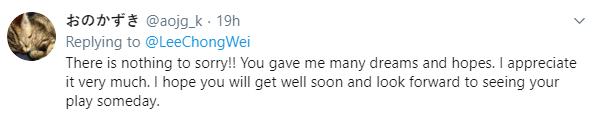 Karena penyakit yang dideritanya, pemain bulutangkis No. 1 Dunia dari Malaysia ini tak bisa ke Tokyo untuk meraih medali emas. Melalui akun Twitternya @LeeChongWei yang di posting pada (6/13 )meminta maaf kepada para pendukung setianya.