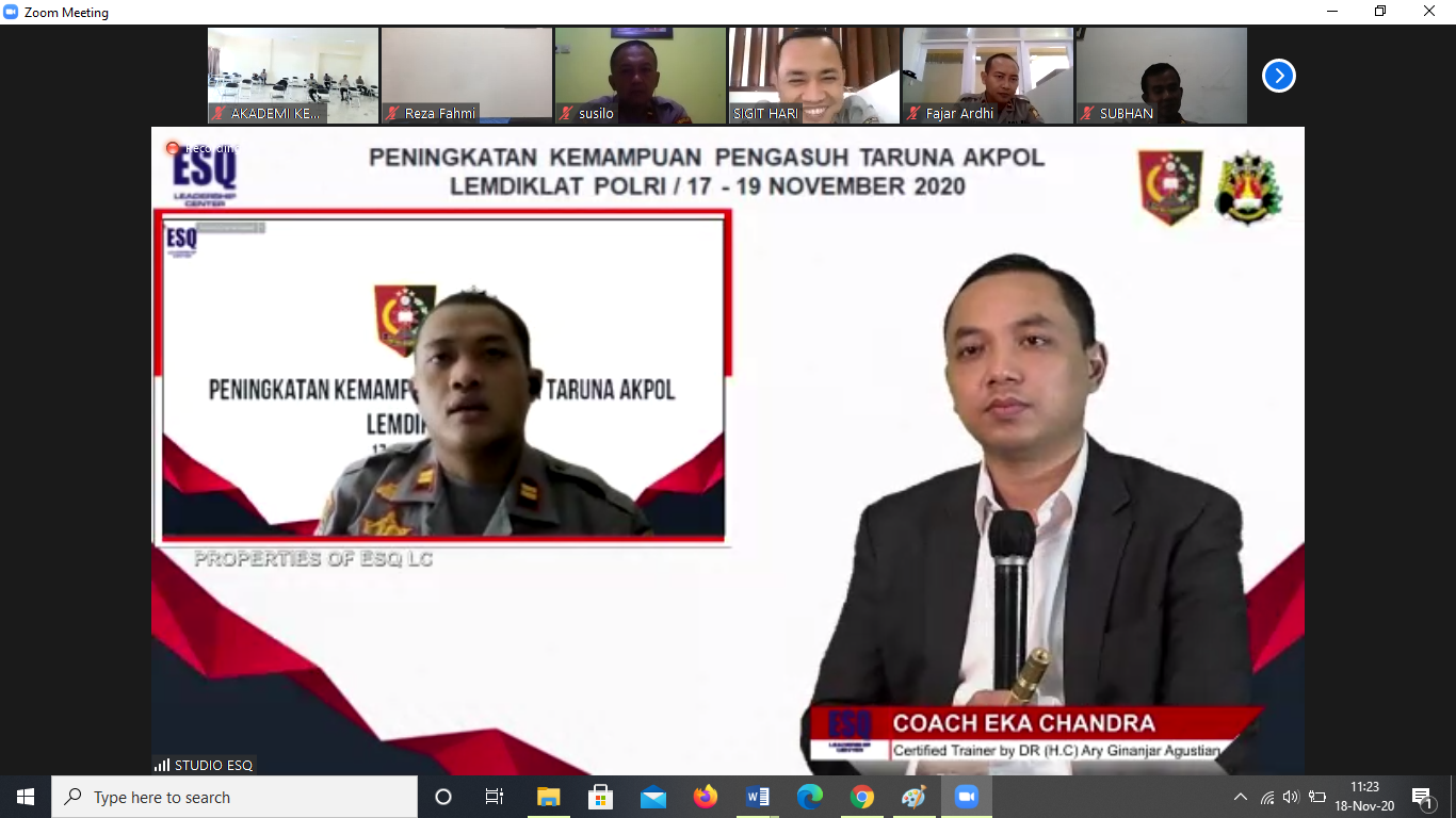 Hari kedua ini, sekitar 41 orang dalam webinar diberikan beberapa test sebagai review di hari sebelumnya. Mereka ditanya terkait 2 jenis coaching, coaching principles asking, ESQ Model dan lainnya. Rata-rata jawaban yang dilontarkan oleh insan Polri itu terkesan ragu-ragu, bisa dilihat langsung dari wajah mereka pada layar zoom.