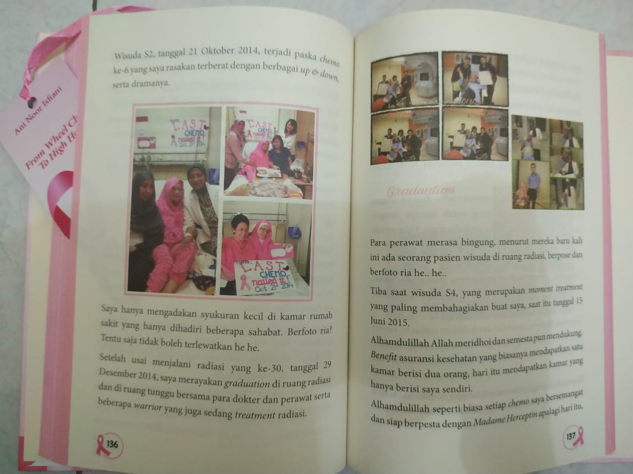 Tak hanya itu, saya pun diangkat rahimnya. Sampai pada akhirnya tahun 2014, saat saya sedang sibuk-sibuknya bekerja, ternyata saya didiagnosa kanker payudara. Allahuakbar betapa ujian ini datang bertubi-tubi dan silih berganti kepada saya. Saya harus kuat ya Rabb," ungkapnya sambil menangis dan terisak ketika mengingat ujian atau cobaan yang kini telah berhasil ia lewati.