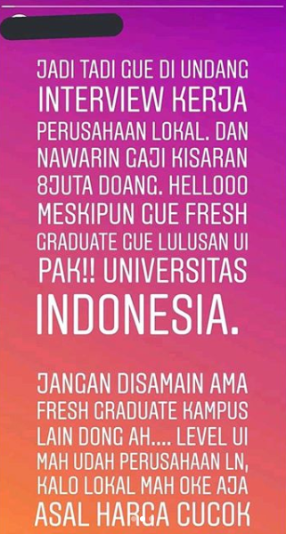 Sehingga berbuah dan menghasilkan mahasiswa yang sangat matang. Namun baru-baru ini viral lulusan UI yang menolak gaji 8 juta di sebuah perusahaan, saat melamar pekerjaan.