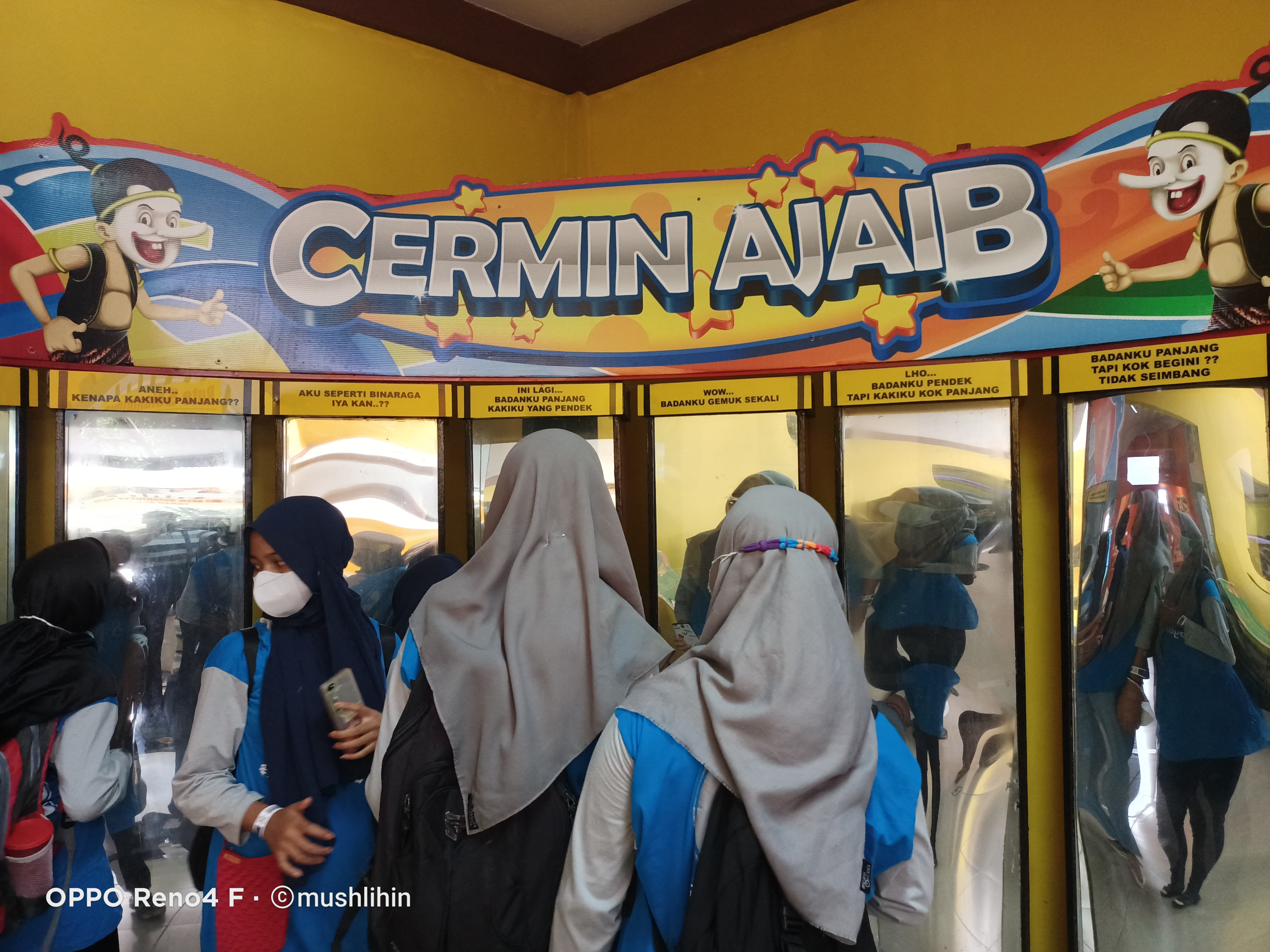 Wisatawan menghambur ke pintu masuk wahana yang diresmikan Mendikbud, Muhadjir Effendy tahun 2016. Panitia membelikannya tiket. Harganya seratus ribu per orang. Bentuknya gelang.