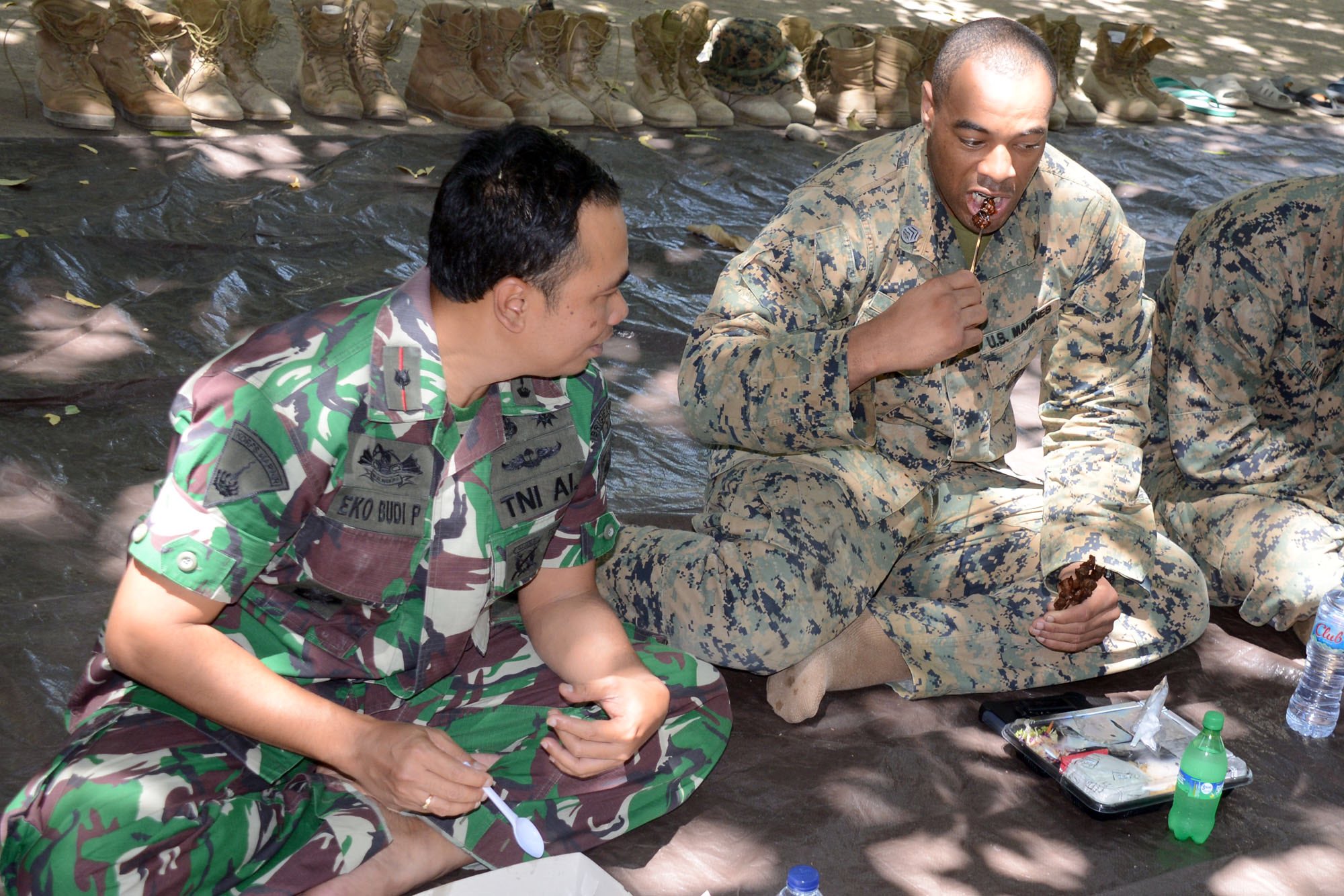 Berita ini langsung dari laman marinir.tnial.mil.id yang diposting pada (11/8). Tanggapan dari para Marinir Amerika sangat antusias mengenal tradisi dan menyantap sate campur gulai.