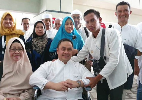 Ary ingin minta maaf dan meminta keikhlasannya karena tidak bisa menemani Jama’ah. Dengan menggunakan kursi roda ia menyambut dengan wajah yang penuh haru.