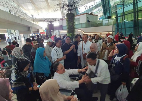 “Saya ucapkan selamat datang kembali ke Tanah Air wahai saudaraku, semoga mabrur umrohmu. Sekali lagi saya minta maaf sedalam-dalamnya karena tidak bisa menemani selama di Tanah Suci. Dan minta maaf atas apabila kekurangan dalam pelayanan," ucap Ary dengan tulus.