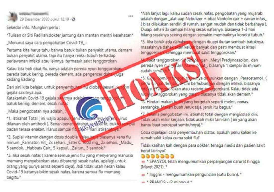 pengobatan Covid-19 itu bukanlah tulisan Siti Fadilah Supari.