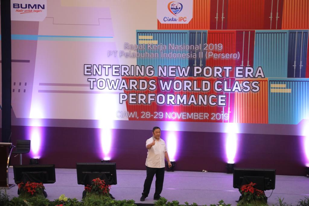 Direktur Utama IPC Elvyn G. Masassya saat membuka Rakernas menyampaikan, “IPC bersiap memasuki tahun Era Baru Pelabuhan Berkelas Dunia di tahun 2020 dengan menetapkan arah dan target korporasi untuk 5 tahun kedepan (2020-2024). Di tahun 2024, IPC memiliki sasaran untuk menjadi Fasilitator Perdagangan Kelas Dunia Melalui Ekosistem Kepelabuhanan,” paparnya.
