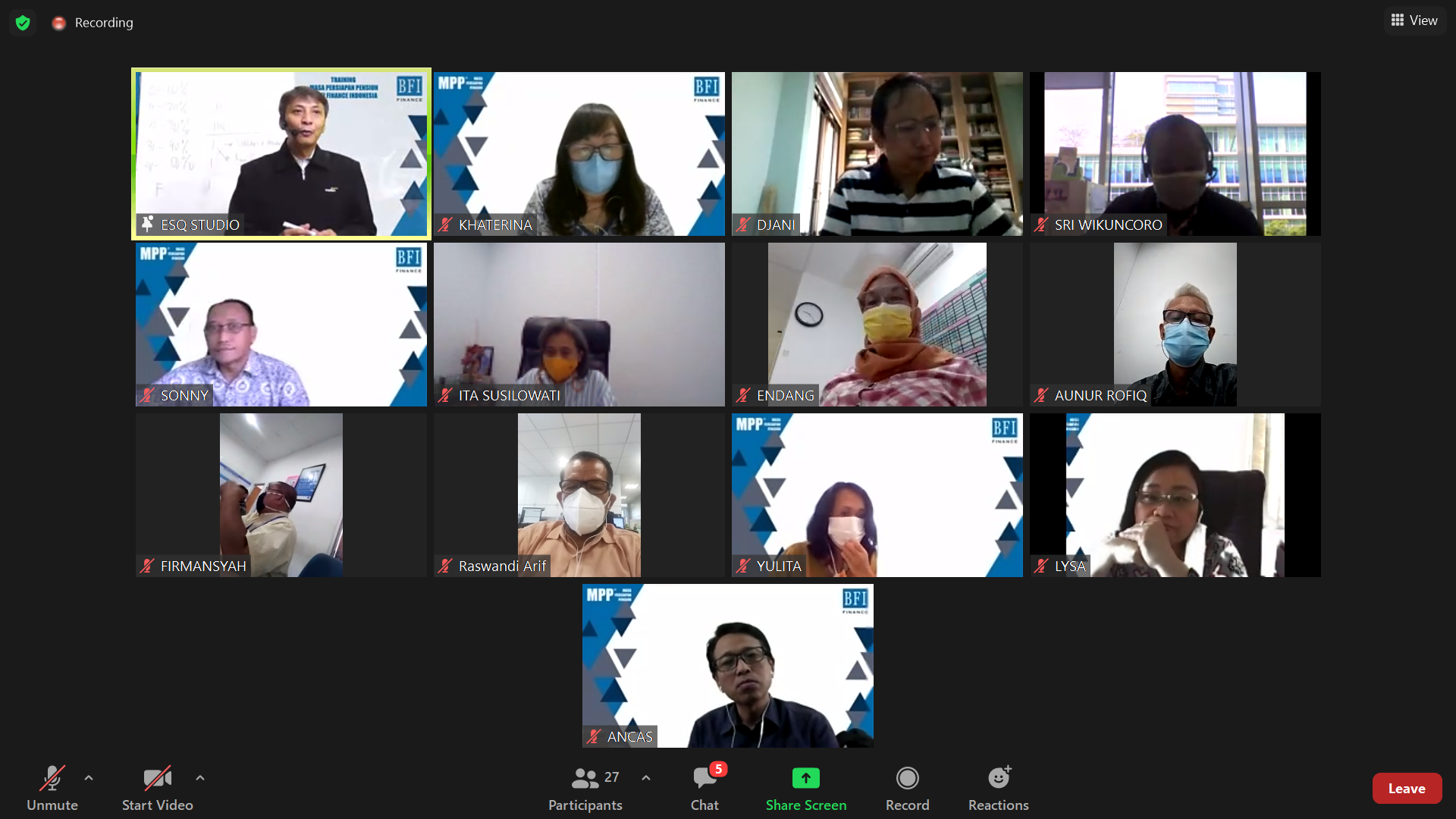Saat webinar, insan BFI Finance dipandu langsung oleh Wendy