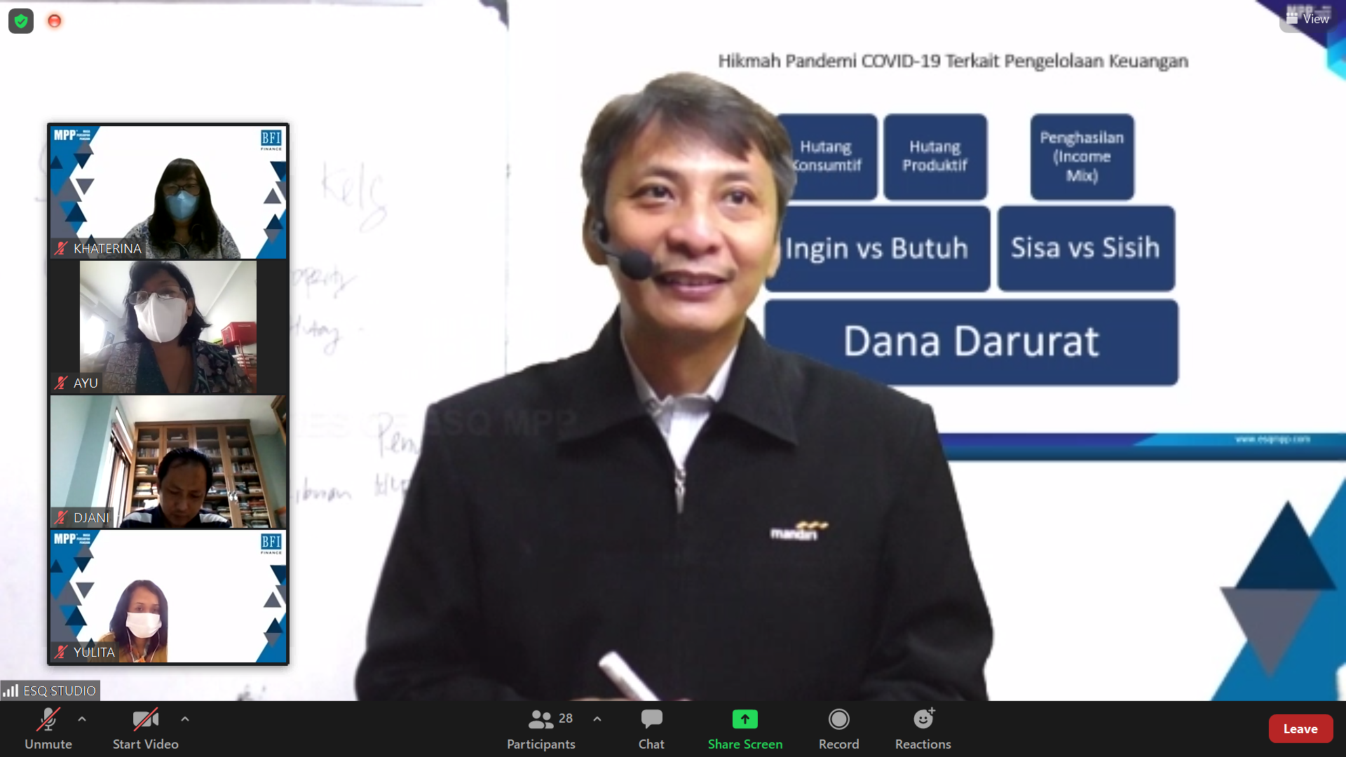 “Di masa pandemic ini bisa kita jadikan ajang untuk lebih mengelola keuangan bersama pasangan di rumah. Seperti saya dan istri. Terutama bagi bapak dan ibu yang akan atau sudah pensiun,” himbau Wendy.