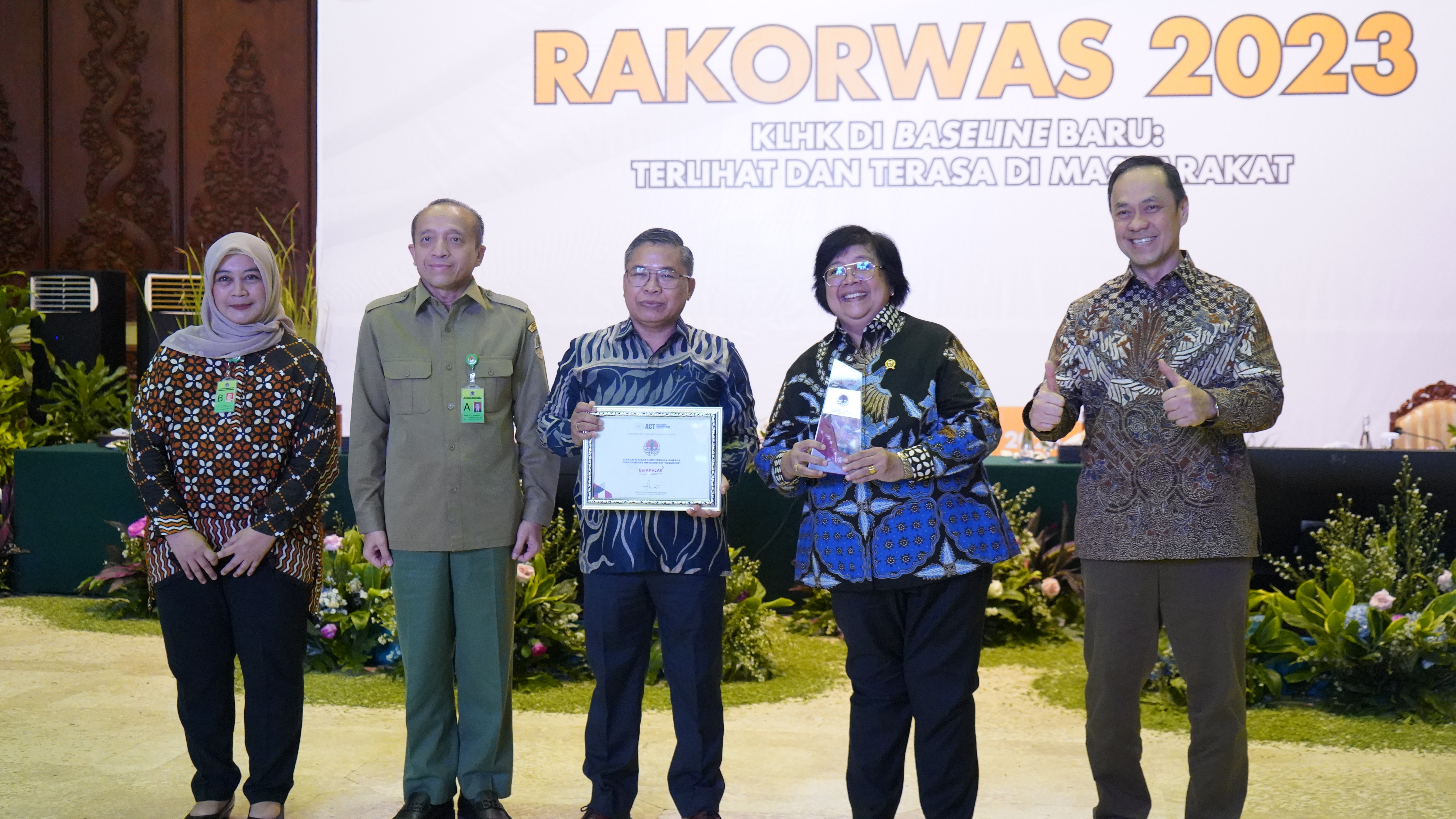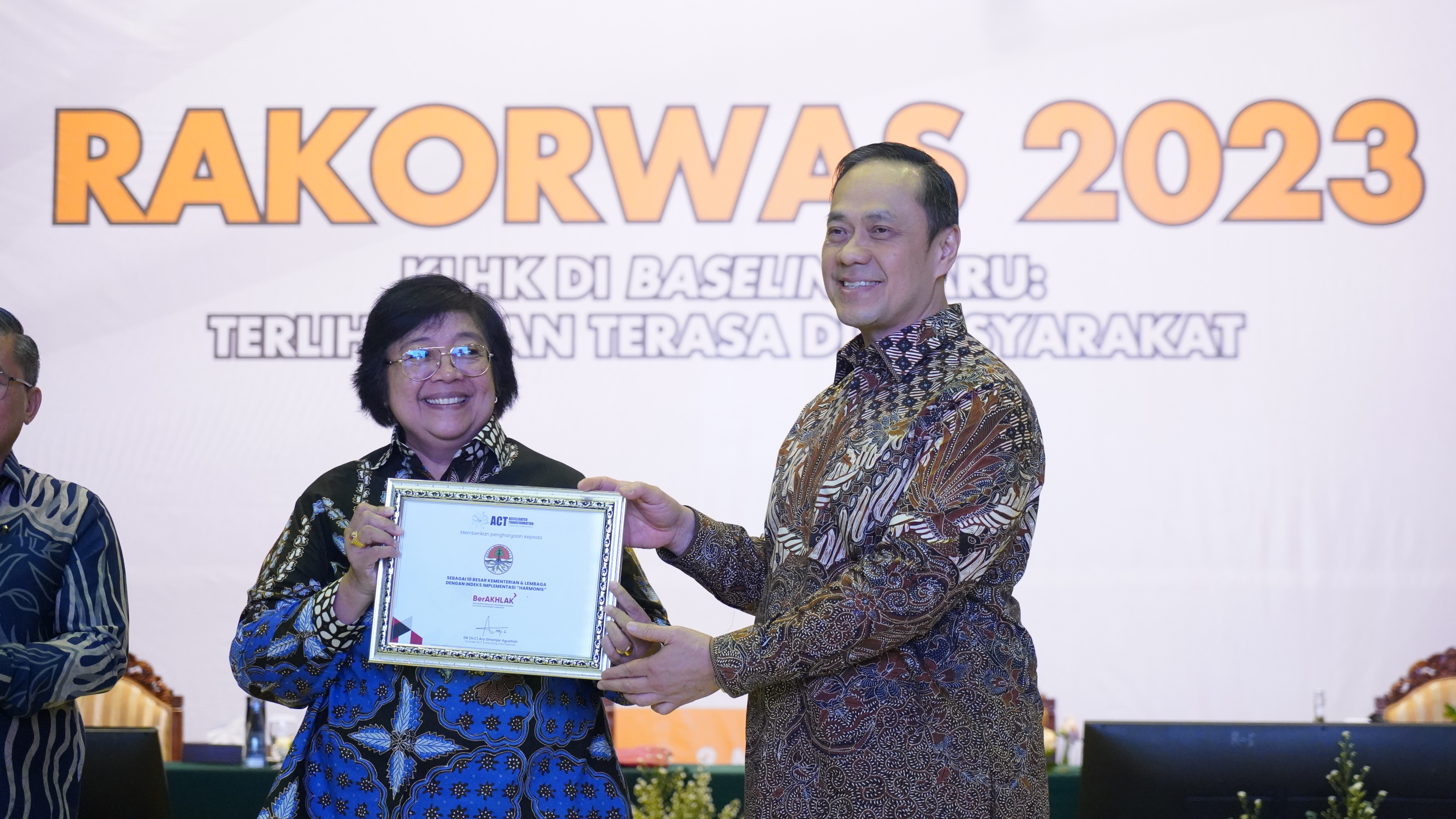 Penyerahan dilakukan langsung Ary Ginanjar Agustian dan diterima oleh Menteri KLHK bersama jajaran.