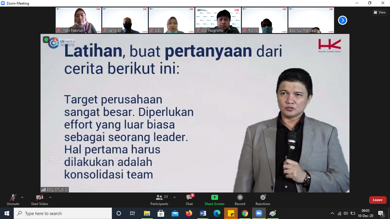 Kamis (10/12/2020) by zoom, Coach Arief mengajak para insan HK untuk me-review