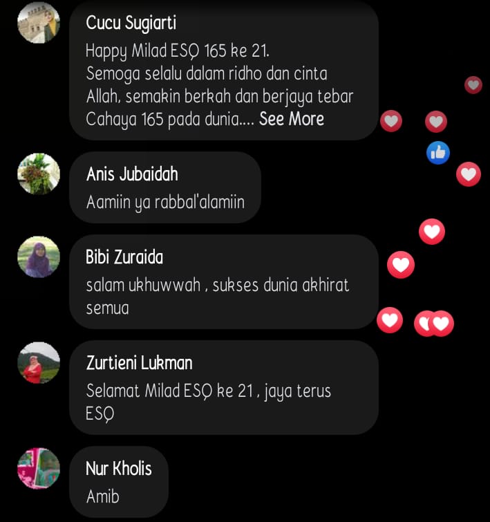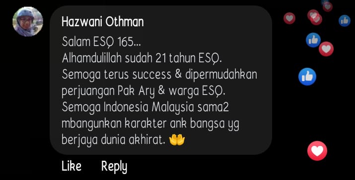 “Alhamdulillah ESQ sudah menginjak ke 21 tahun. Terimakasih Pak