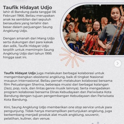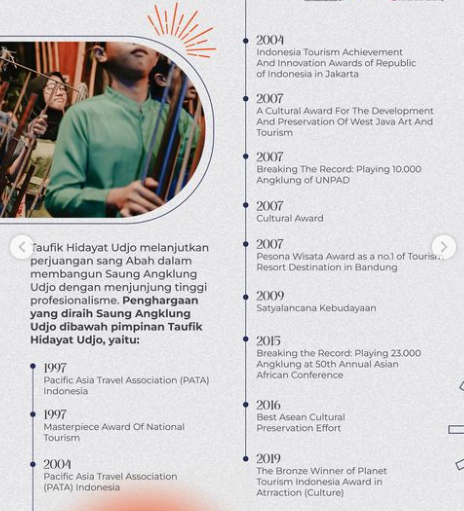 Berikut ini adalah perjalanan Taufik Hidayat Udjo versi Disbudpar Bandung! Tentunya masih banyak lagi pengalaman-pengalaman dan penghargaan-penghargaan Taufik Hidayat Udjo lainnya yang belum disebutkan.