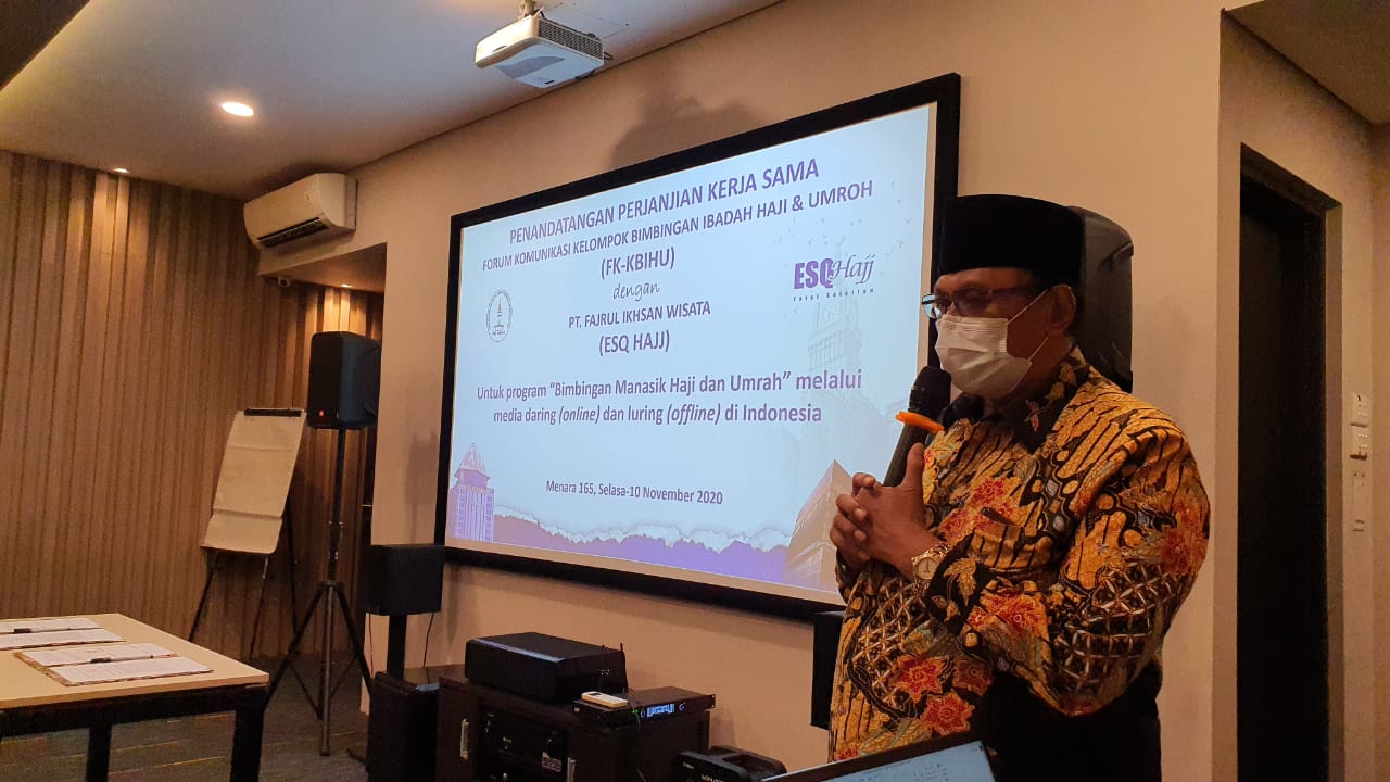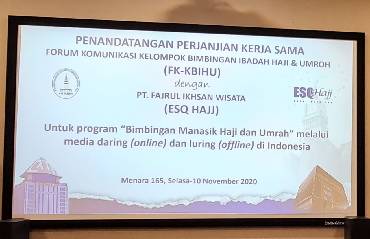 ESQNews.id, JAKARTA - Bertepatan dengan Hari Pahlawan, "Forum Komunikasi Kelompok Bimbingan Ibadah Haji & Umroh FK-KBIHU dengan ESQ Tours Travel melaksanakan MoU atau Penandatanganan Perjanjian Kerjasama antara keduanya pada Selasa (10/11/2020) secara offline.
