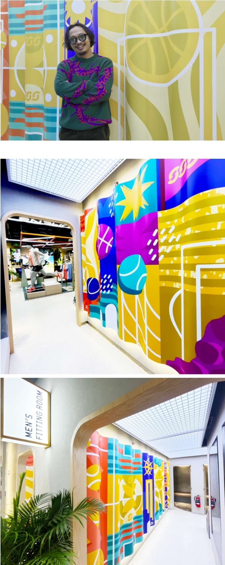 Karya seni oleh Popomangun akan ditampilkan pada area fitting room dan beberapa spot lainnya di dalam butik SSS di PIM 3 yang menambah nilai estetik juga memberi kesan menarik dan fresh bagi seluruh pengunjung.