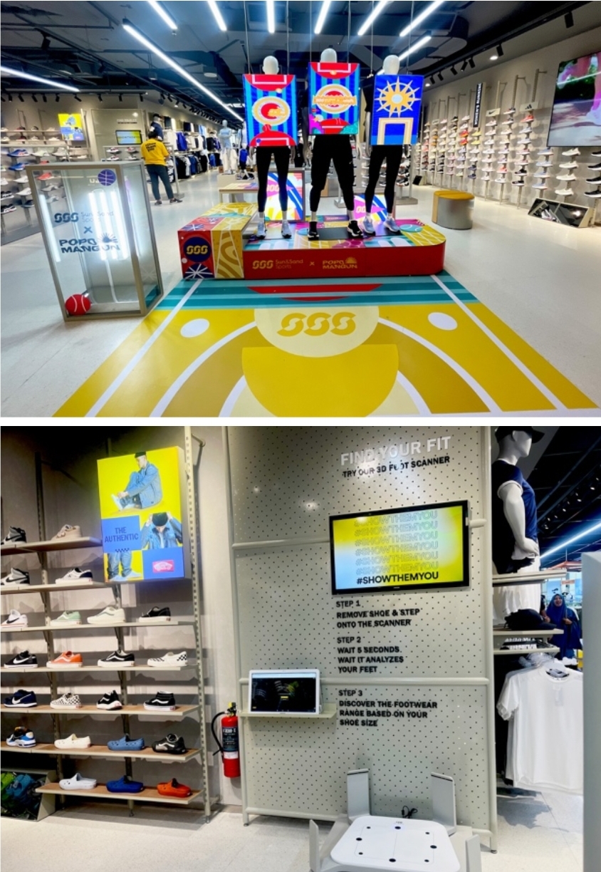 Digital LED Lift and learn, Attract Zone menampilkan kurasi pilihan produk terbaik di SSS, Digital Foot Scanner, yang menambahkan pengalaman berbelanja di SSS