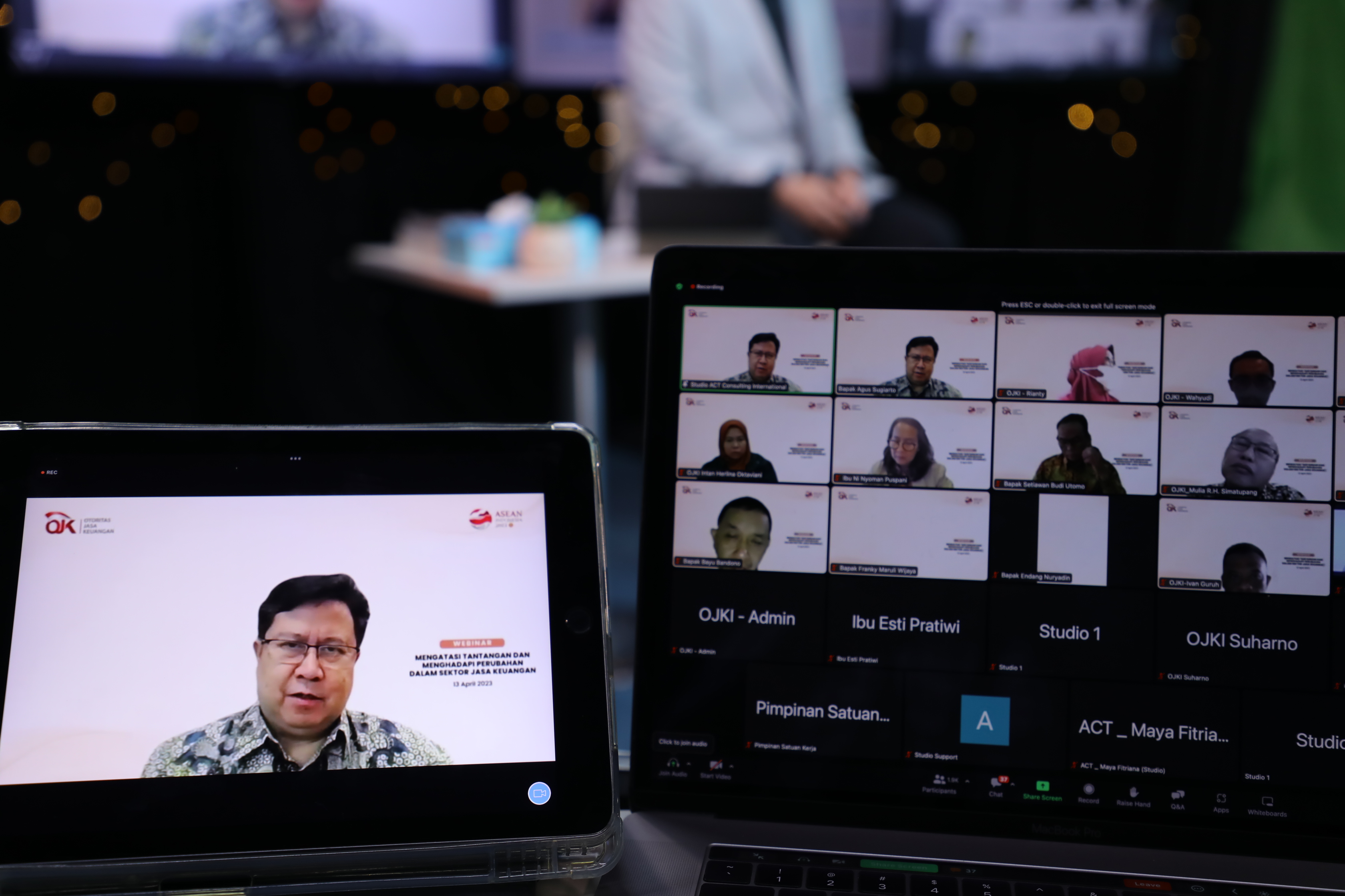 Kegiatan webinar dibuka oleh Kepala OJK Institute yaitu Agus Sugiarto yang menyampaikan sambutan.
