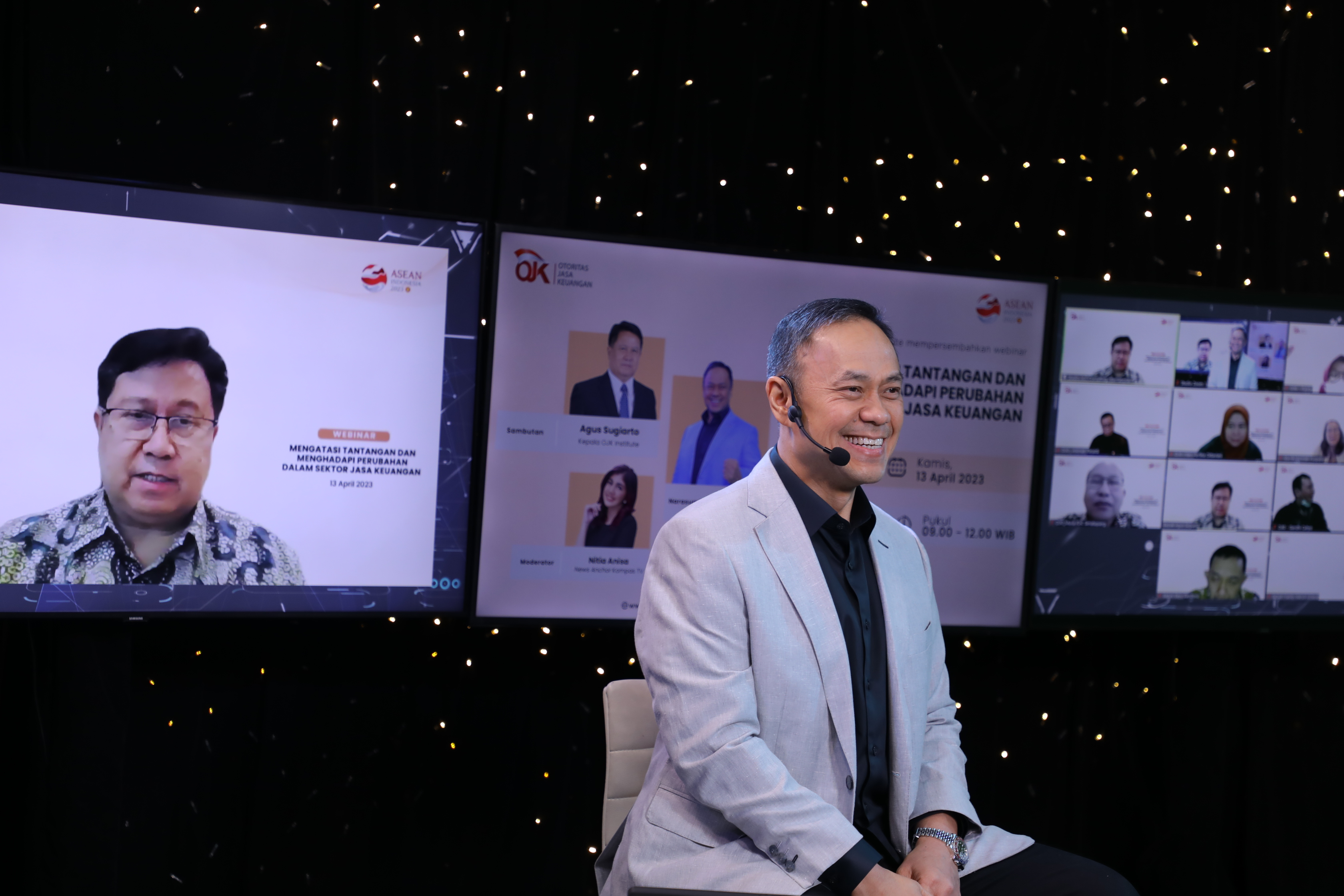 “Webinar ini merupakan seri dari webinar OJK Institute yang bersifat khusus untuk sektor keuangan mendapatkan soft skill yaitu dapat mengatasi tantangan dan dapat menghadapi perubahan. Karena, kesiapan dari Human Capital menjadi prioritas," Agus Sugiarto membuka kalimatnya.