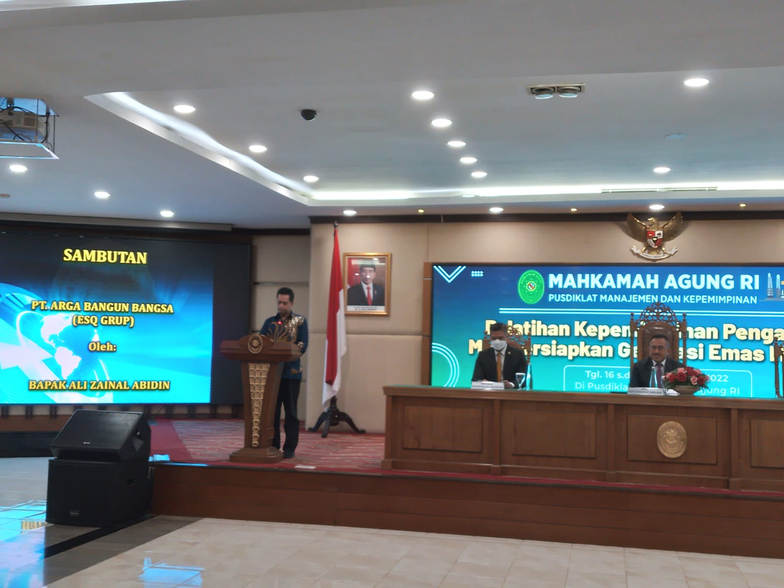 ESQNews.id, JAKARTA - Kesekian kalinya, Mahkamah Agung Republik Indonesia (MA) menjalin kolaborasi dengan ESQ. Hari ini, tanggal 17 November 2022 sedang berlangsung pembukaan acara "Pelatihan Kepemimpinan Pengadilan dalam Mempersiapkan Generasi Emas Mahkamah Agung 2045" di Mega Mendung, Bogor.