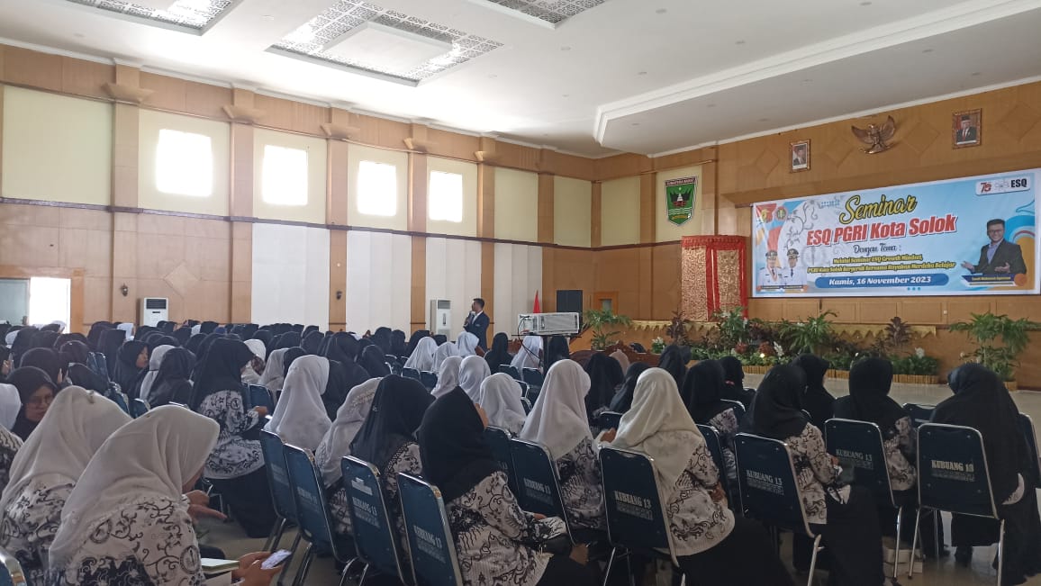ESQNews.id, SOLOK – Hari Ulang Tahun ke-78 Persatuan Guru Republik Indonesia (PGRI) Kota Solok disemarakkan dengan seminar ESQ. Seluruh guru Sekolah Dasar, tingkat pertama hingga menengah atas ikut berpartisipasi.