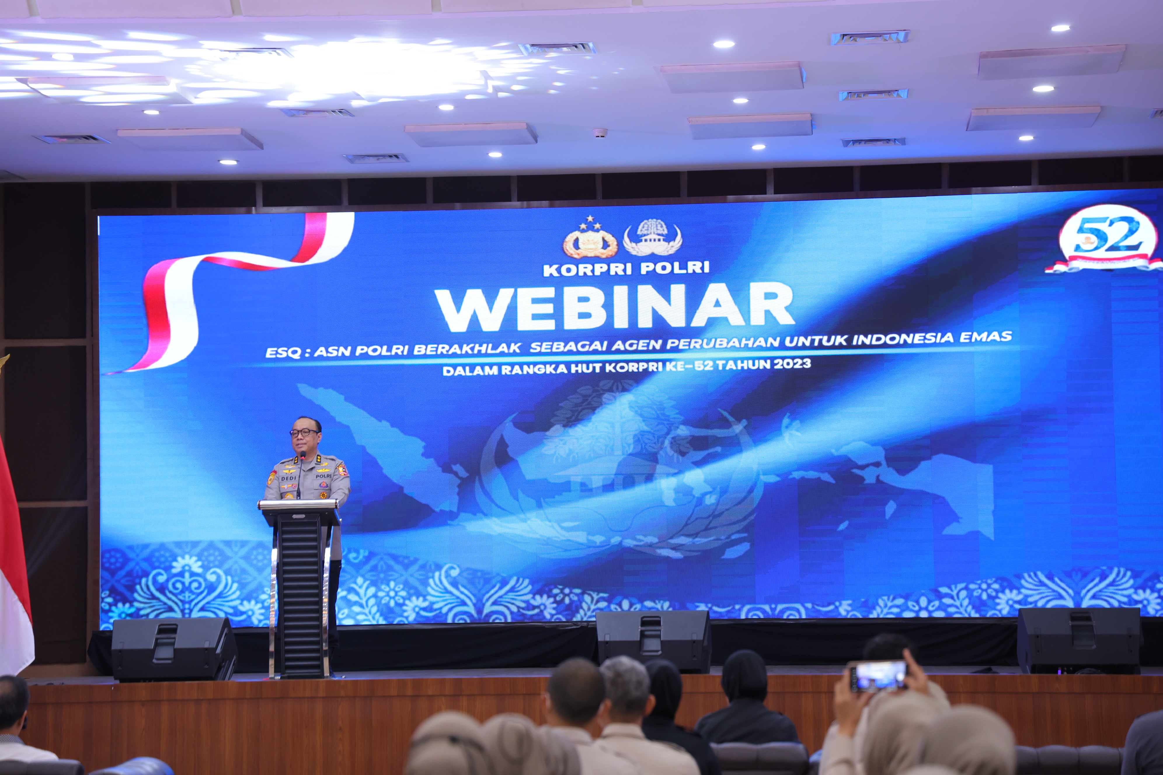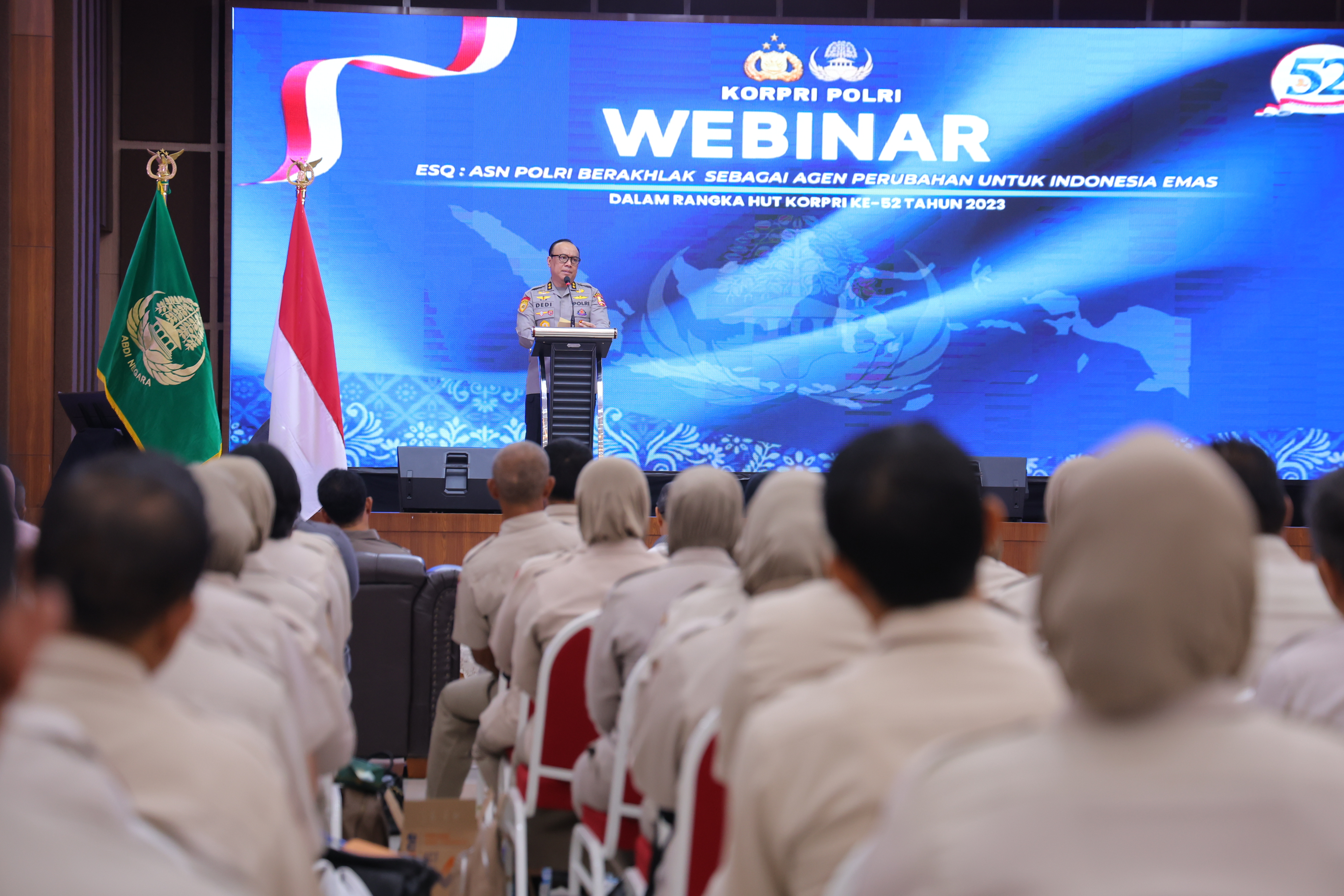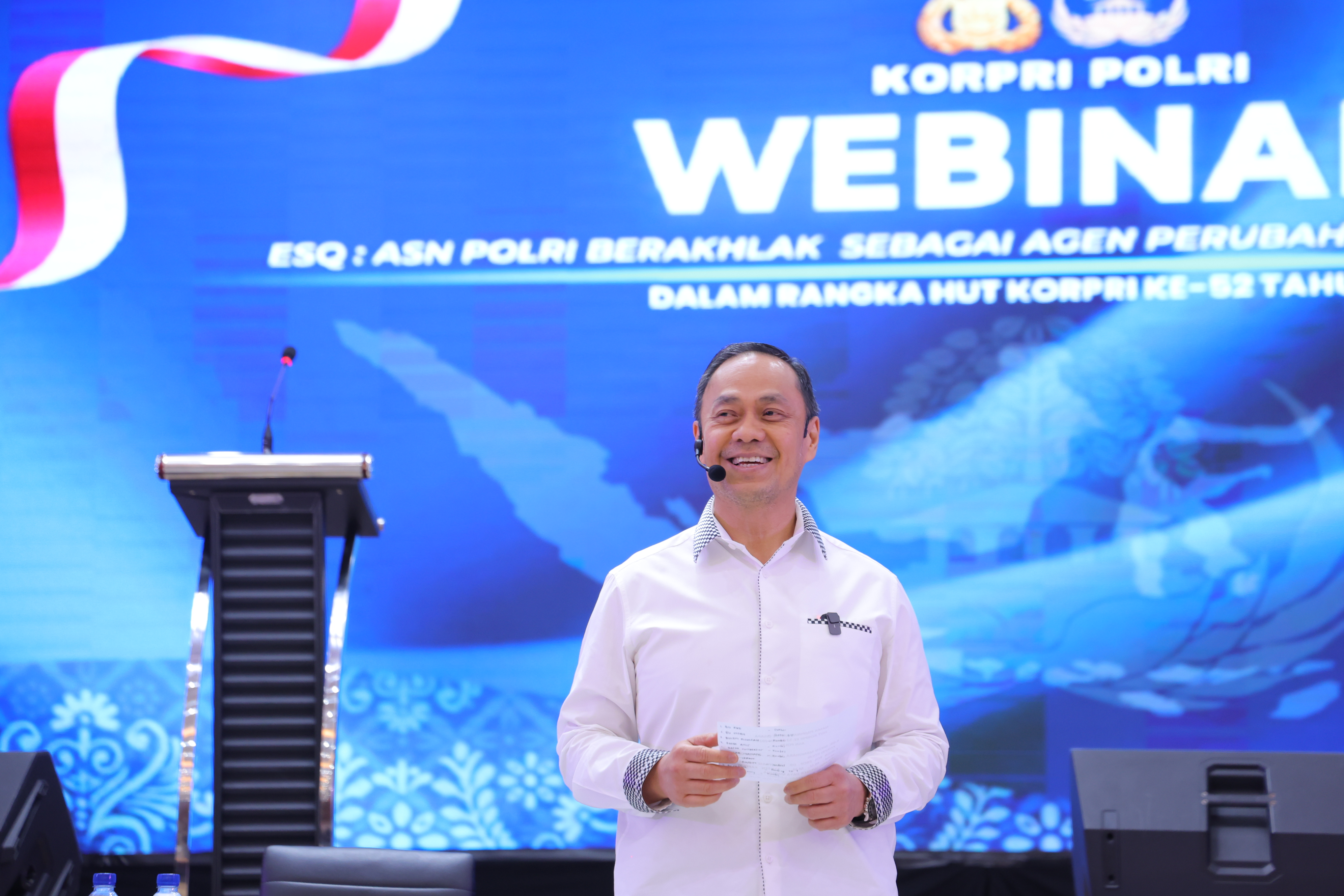 ESQNews.id, JAKARTA - Dalam rangka HUT Korpri Ke-52, telah digelar acara dengan tema "ESQ: ASN Polri BerAKHLAK sebagai Agen Perubahan untuk Indonesia Emas 2045" pada Selasa, 21 November 2023 secara hybrid (offline di Gedung Bareskrim Polri lantai 9 Jakarta dan online melalui Zoom Meeting dan Youtube).