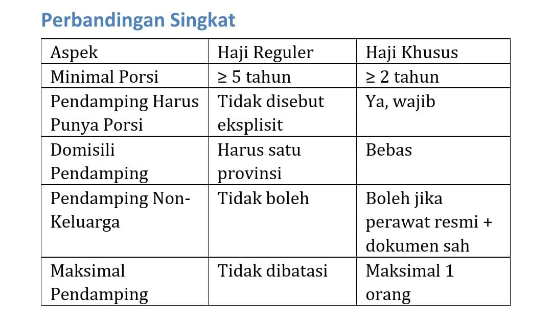 Ketentuan ini tercantum dalam UU No. 8 Tahun 2019, serta secara teknis diatur dalam PMA No. 13 Tahun 2021 untuk Haji Reguler dan PMA No. 6 Tahun 2021 untuk Haji Khusus.