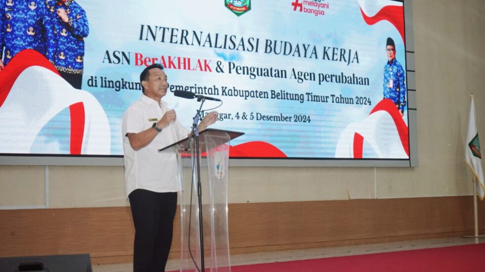 ESQNews.id, BELTIM – Pemerintah Kabupaten Belitung Timur (Pemkab Beltim) menggelar kegiatan Internalisasi Core Values BerAKHLAK dan Penguatan Agen Perubahan guna memperkuat budaya kerja dalam mewujudkan pelayanan publik yang bertanggung jawab.
