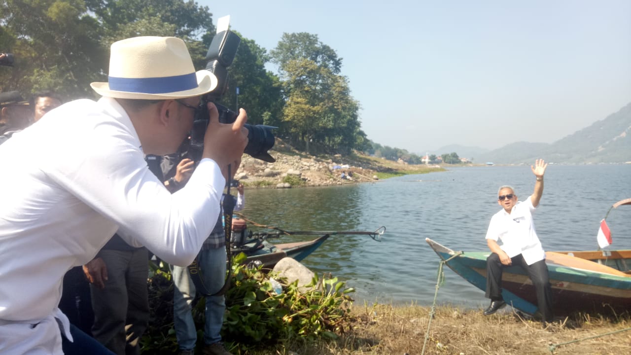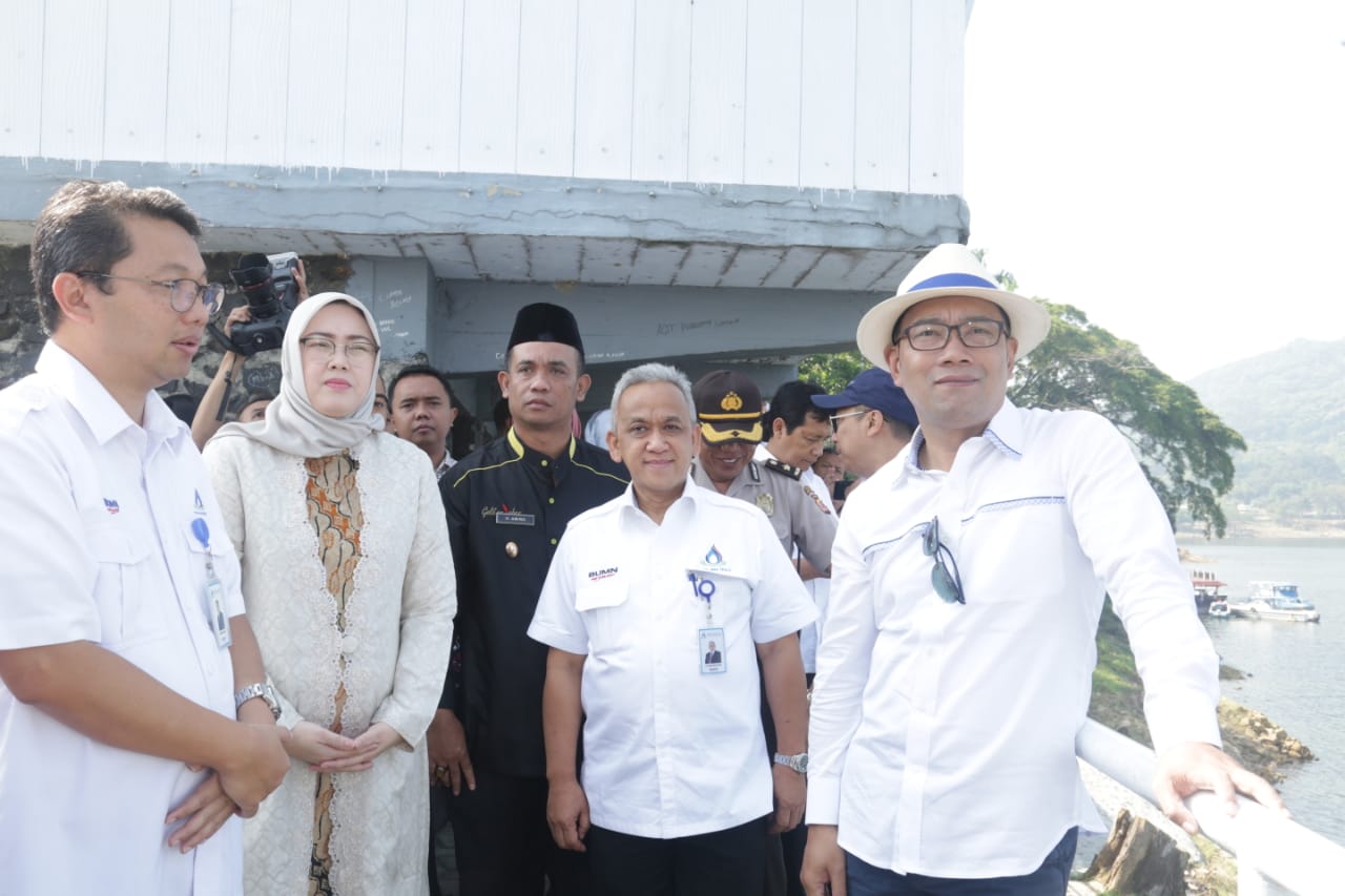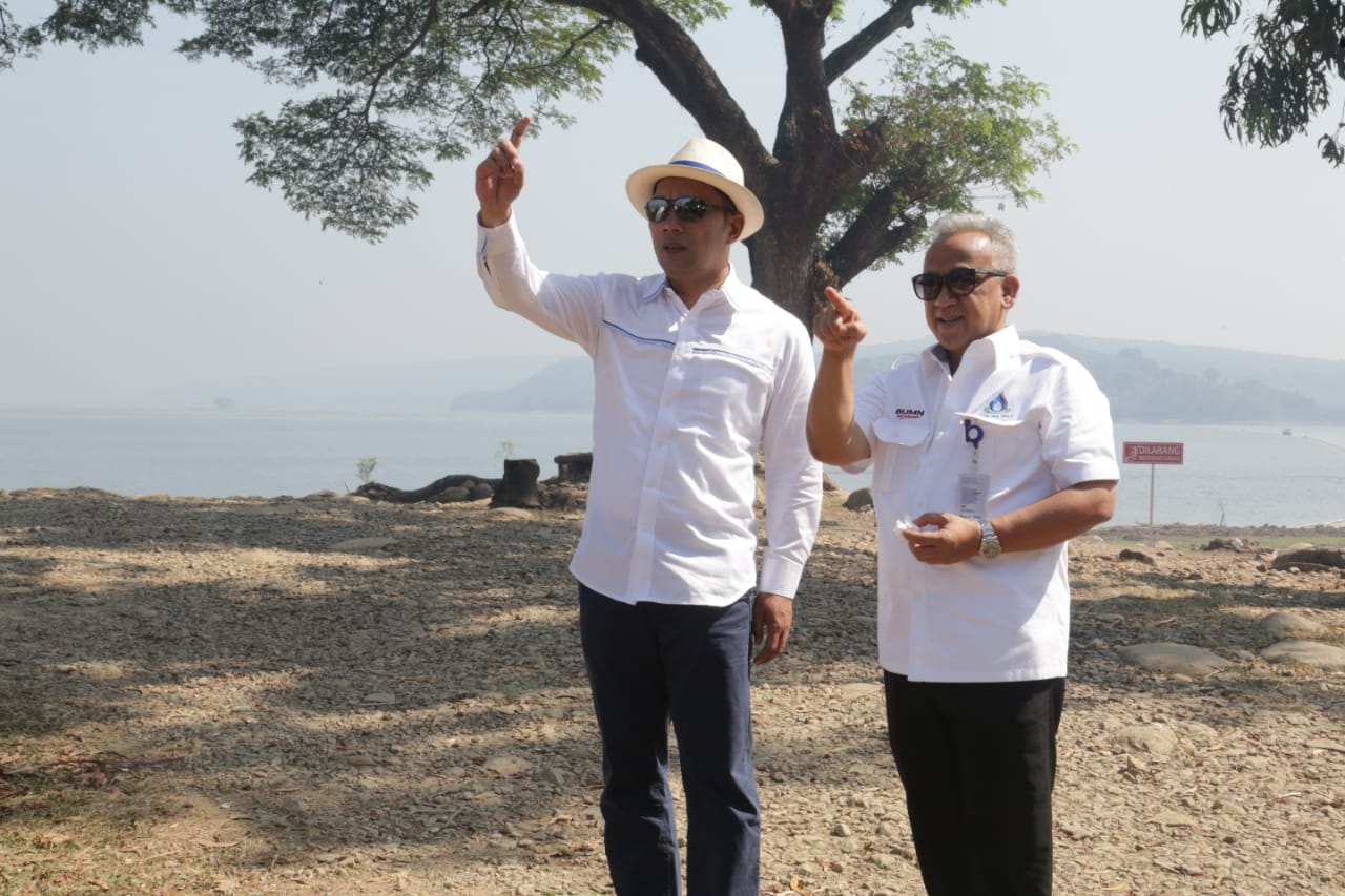 Gubernur Jawa Barat Ridwan Kamil meninjau langsung kondisi waduk Jatiluhur, Rabu (19/6/2019). Menurutnya, bendungan yang dibangun oleh kontraktor asal Prancis Compagnie française d'entreprise pada 1957 itu berpotensi meningkatkan Pendapatan Asli Daerah (PAD) sampai lima kali lipat.