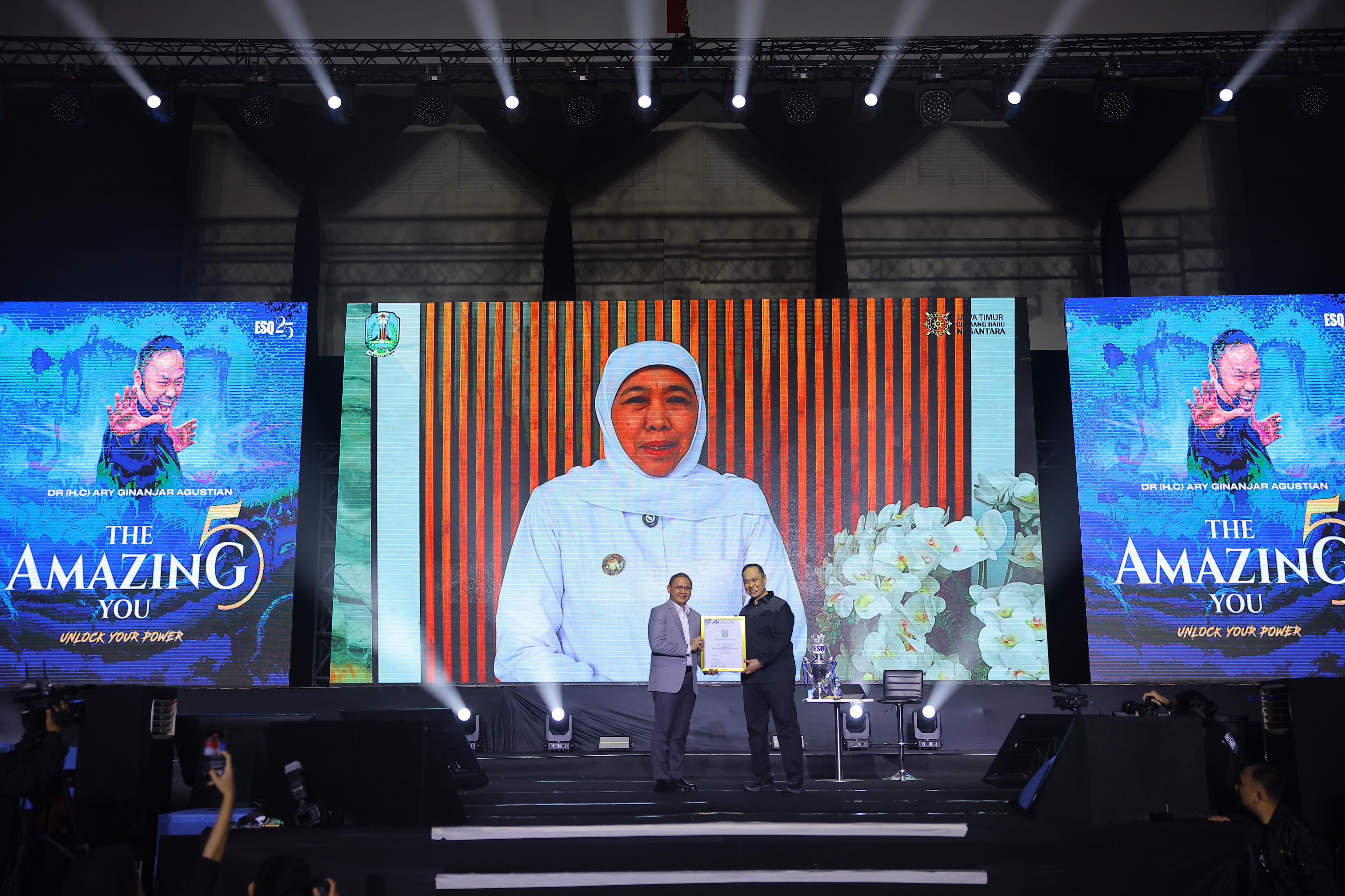 Penghargaan diserahkan langsung oleh Dr. (H.C.) Ary Ginanjar Agustian, Founder ESQ Corp, kepada perwakilan Pemprov Jatim yang dipimpin oleh Dr. Aris Agung Paewai, M.M., Kepala Dinas Pendidikan Jawa Timur.