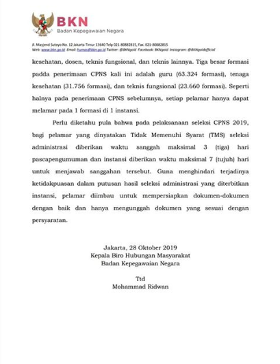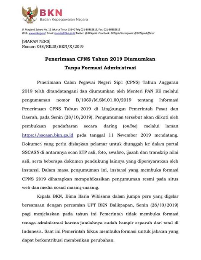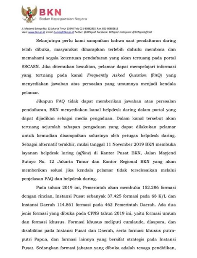 Berikut informasi lengkap dari Badan Kepegawaian Negara (BKN):