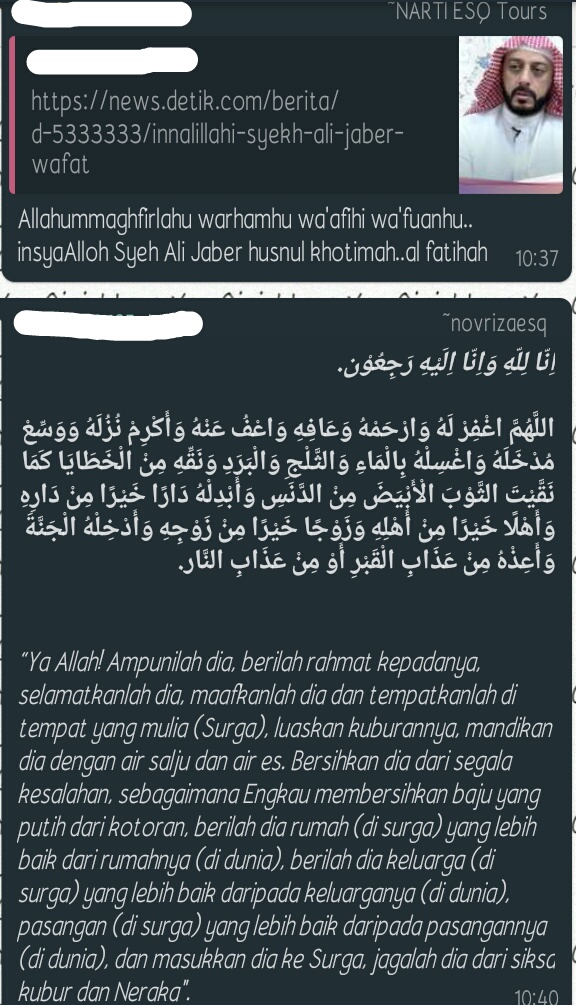 Ulama asal Madinah, Arab Saudi itu banjir doa dari banyak orang serta ESQ Group. Karena, ia juga adalah seorang Alumni ESQ.