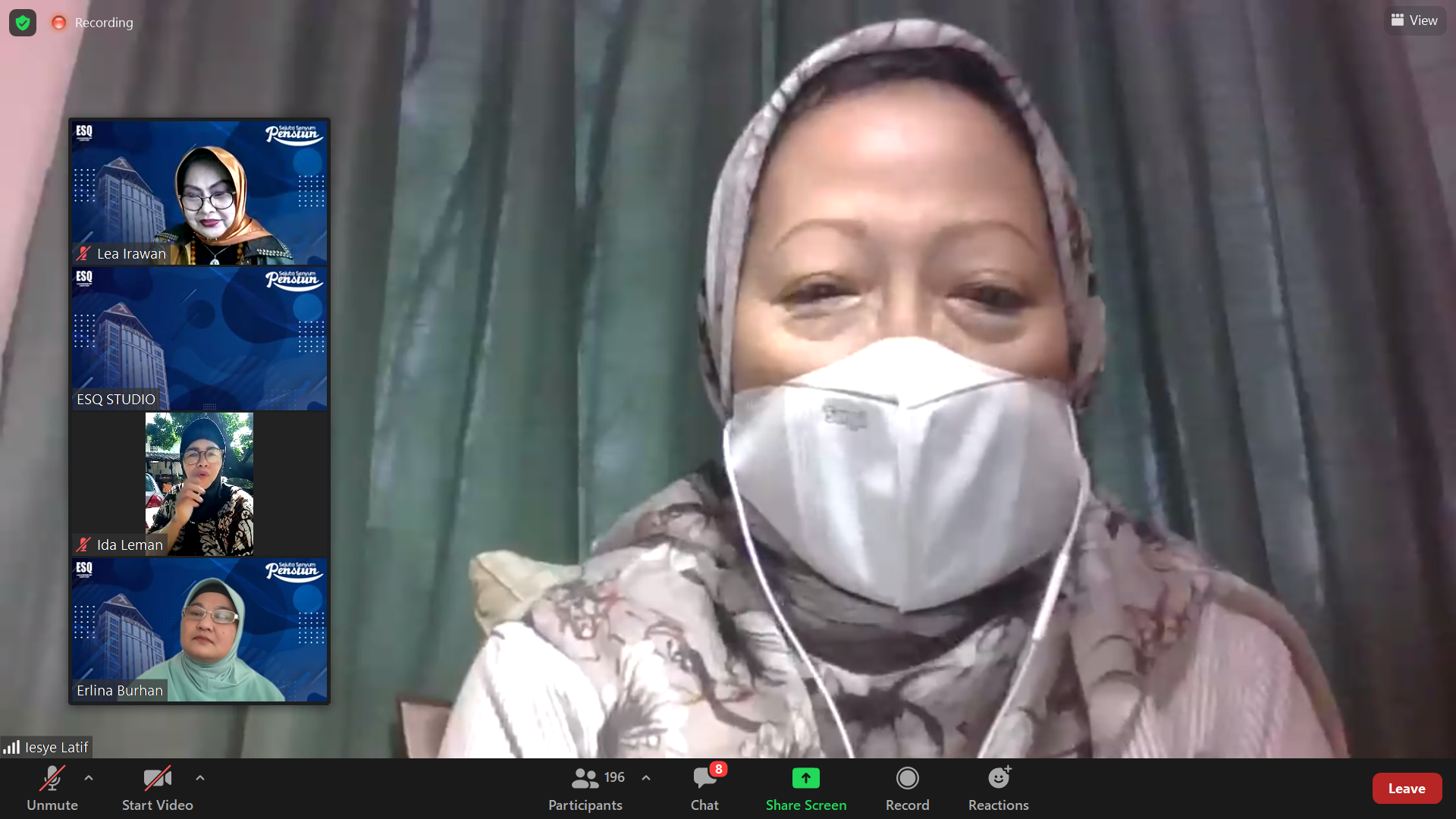 Selain dr. Lies Dina, Lea Irawan (Ketua Komunitas Sejuta Senyum Pensiun) dan Iesye S Latief (Penggagas ESQ Peduli Kesehatan) hadir dalam acara yang bertajuk Pensiun Sehat di Masa Pandemi.