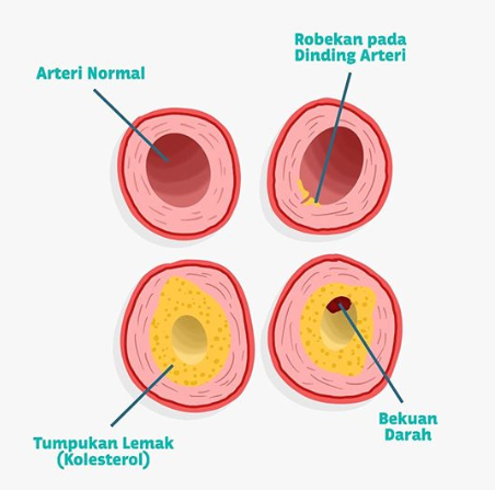 Sumbatan ini bisa bermacam-macam, seperti plak, sobekan dinding jantung, tumpukan lemak (kolesterol), dan bekuan darah.