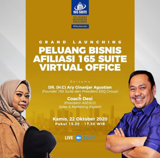 Bagi yang masih penasaran, bisa bergabung sore ini pada Kamis (22/10/2020) pukul 15.30 - 17.30 WIB dalam acara GRAND LAUNCHING PROGRAM AFILIASI 165 SUITE VIRTUAL OFFICE by Zoom Meeting (online).